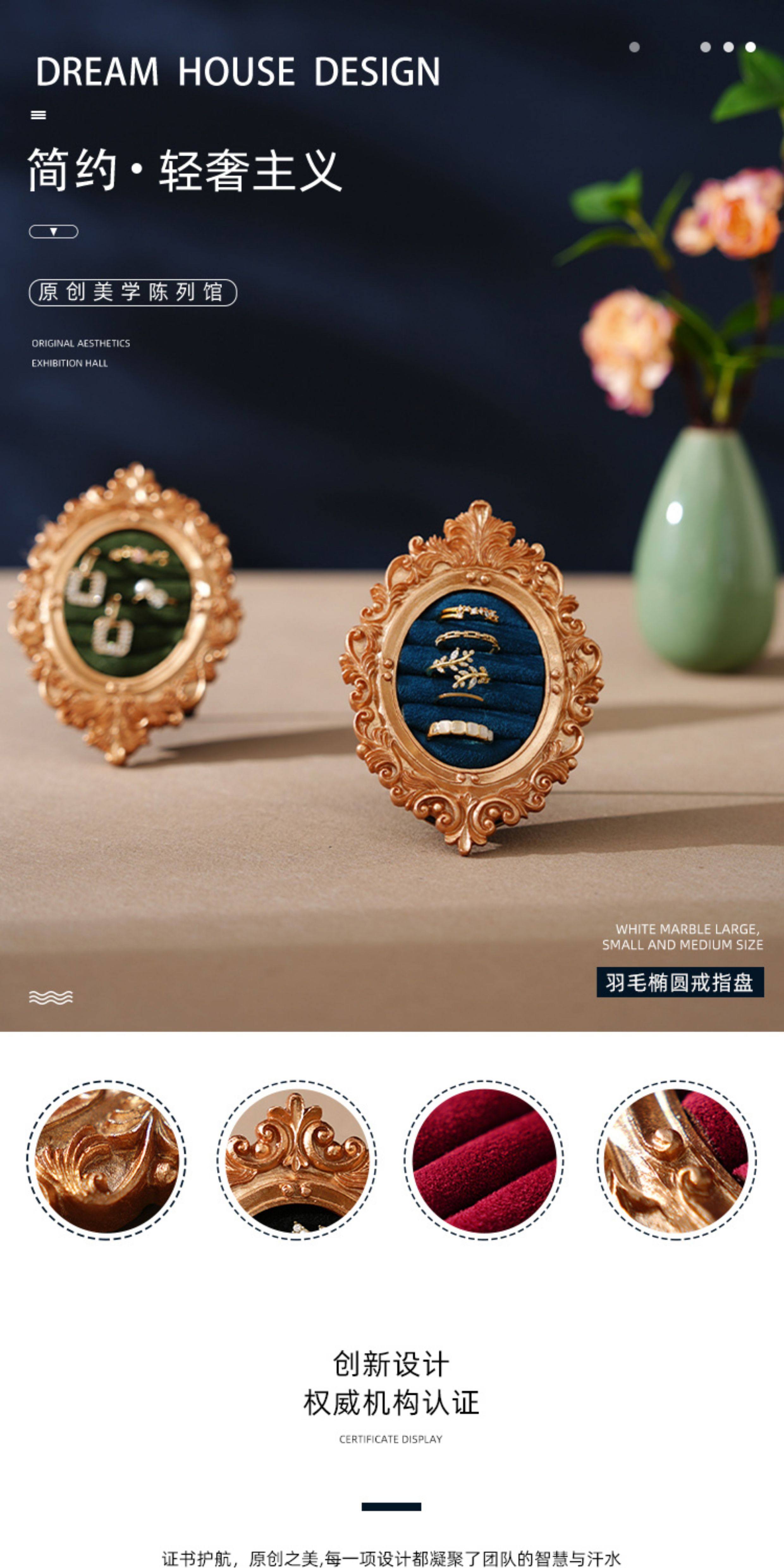 首飾展示架橢圓相框復古戒指收納盤飾品店鋪陳列拍攝道具家用擺件