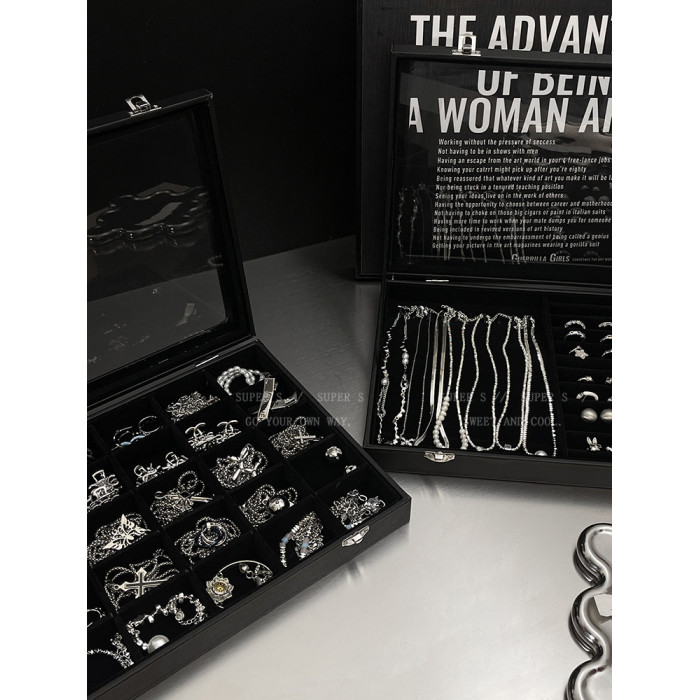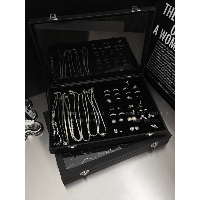 高級感大容量絲絨透明首飾盒項鍊戒指耳環防氧化防塵收納盒飾品盒