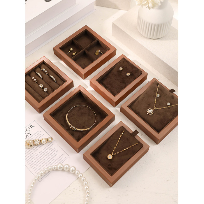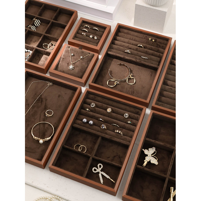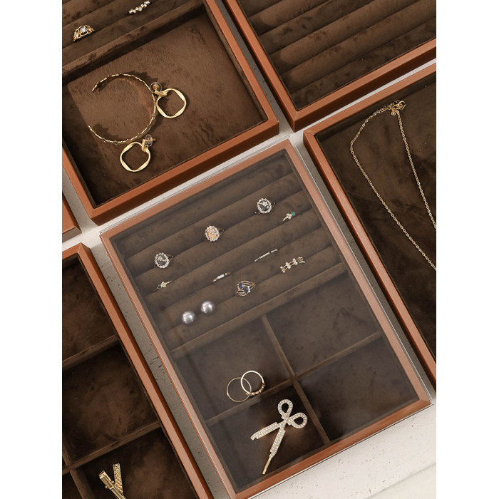 首飾托盤絨布帶蓋放置盤收納盤項鍊戒指手鏈耳釘展示盤飾品展示架