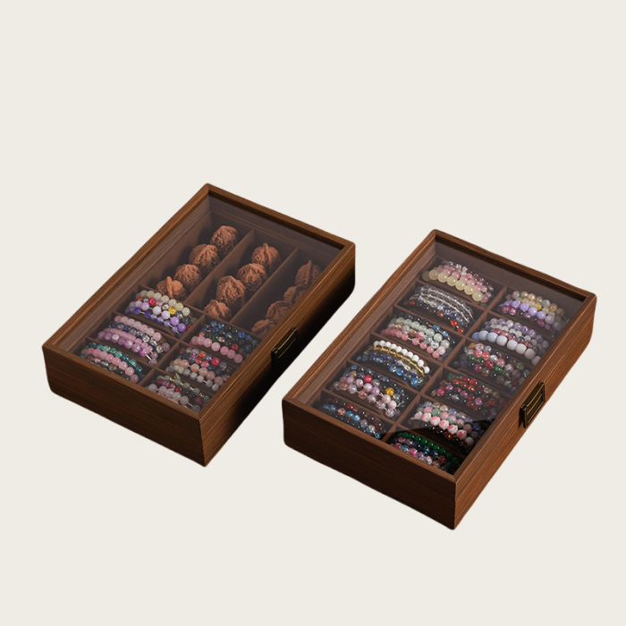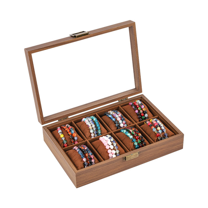 高檔手錶盒帶蓋防塵水晶手鏈手串首飾收納盒手錶彿珠文玩展示盒子