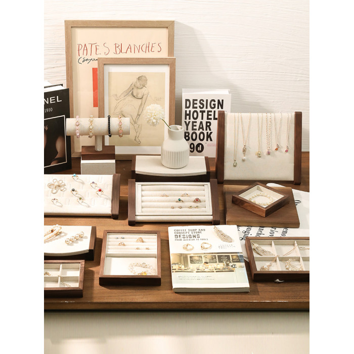飾品陳列展示道具項鍊掛架麻布胡桃木手串耳環戒指手鏈首飾展示架