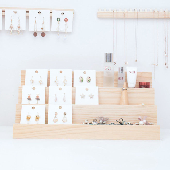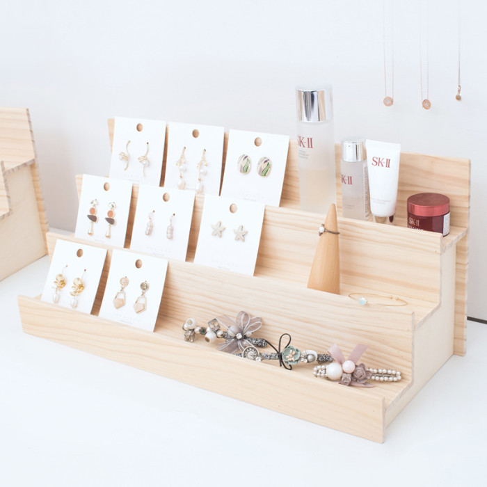 實木梯形化妝品 毛絨公仔收納展示架 手辦架子桌面擺放台家用多層