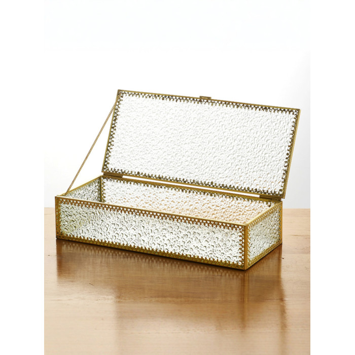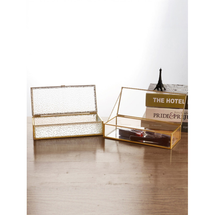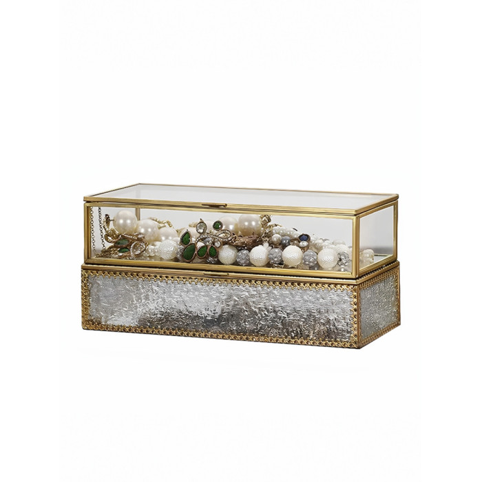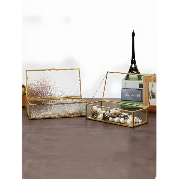 簡約復古金邊透明玻璃首飾盒歐式珠寶收納盒精緻防氧化擺件消磁盒
