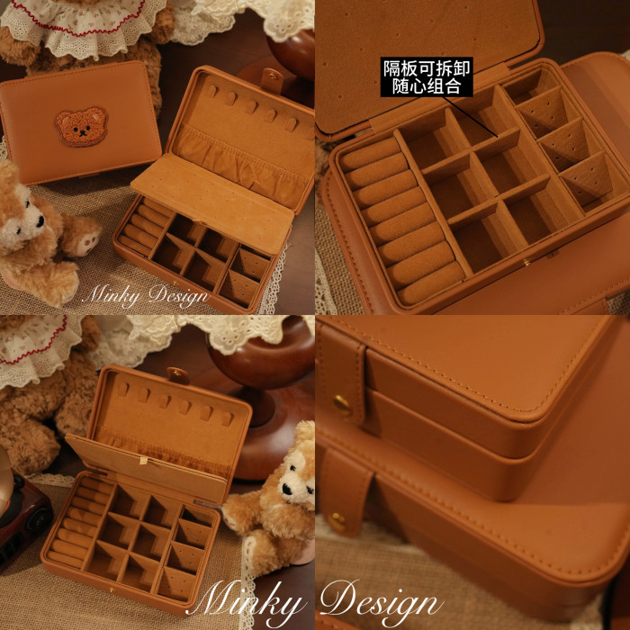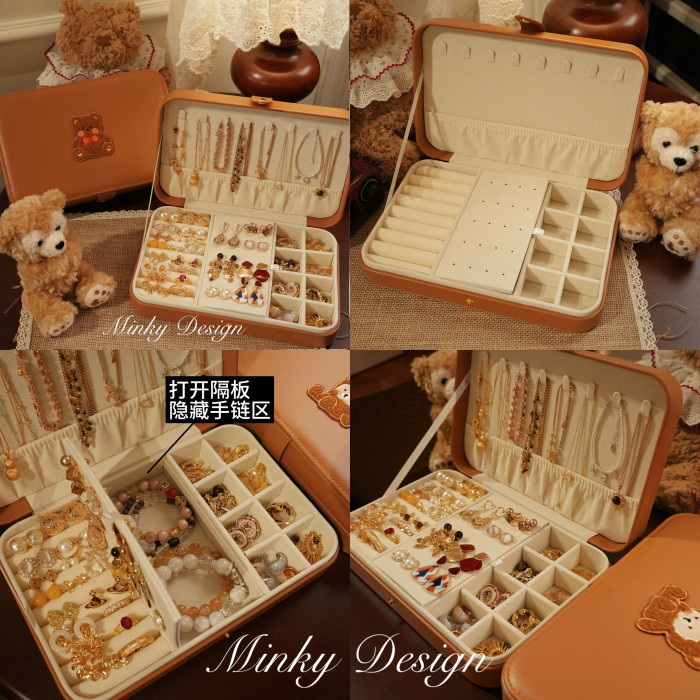 「熊熊家族四代」小熊首飾盒戒指項鍊收納盒耳環耳釘簡約女珠寶盒