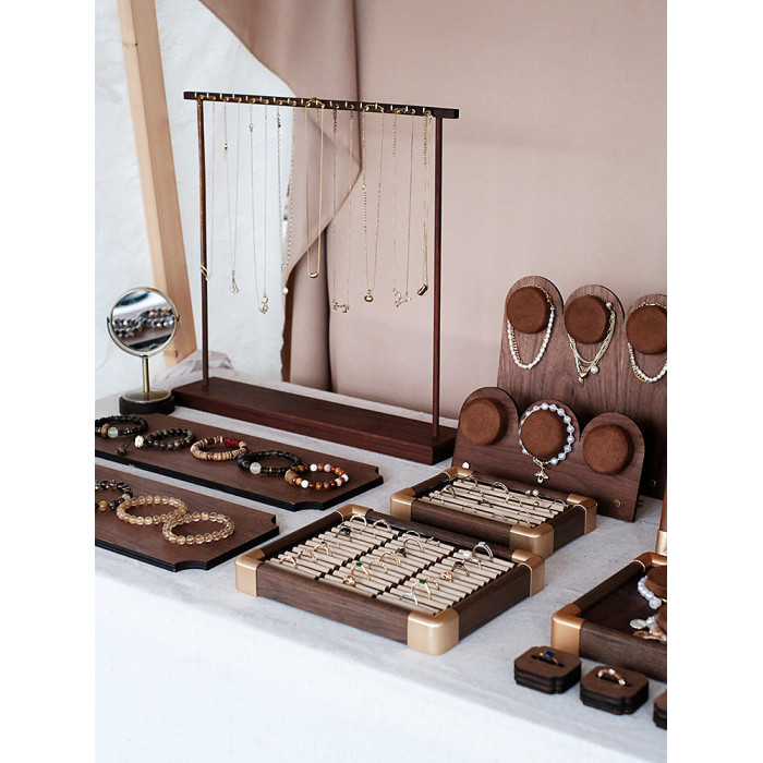 首飾展示架胡桃木戒指收納架子手串牌項鍊架飾品珠寶陳列拍攝道具