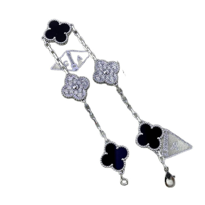 五花手鏈間鑽熊貓款V金cnc高版本鍍18k白金瘦花花朵鏈條時尚通勤