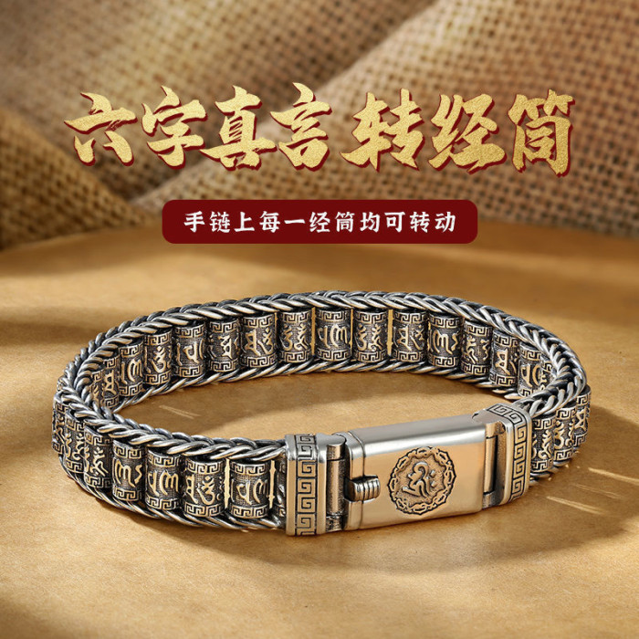 翔栩六字箴言手鏈男手工編織路路通六字真言轉經筒手鏈國潮風飾品