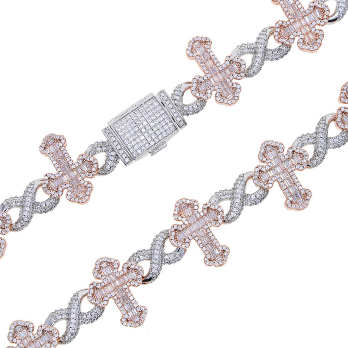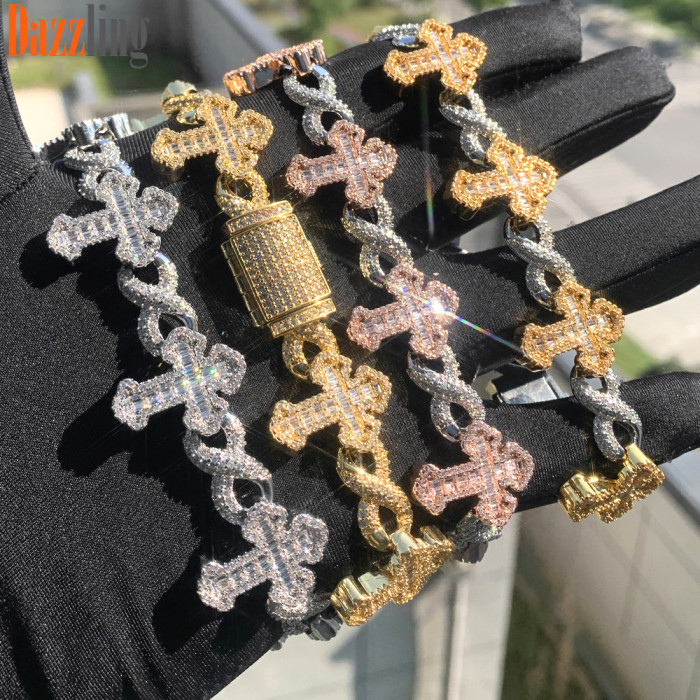 新款嘻哈8字無限鏈梯方十字架滿鑽手鏈男個性百搭高級感鋯石飾品