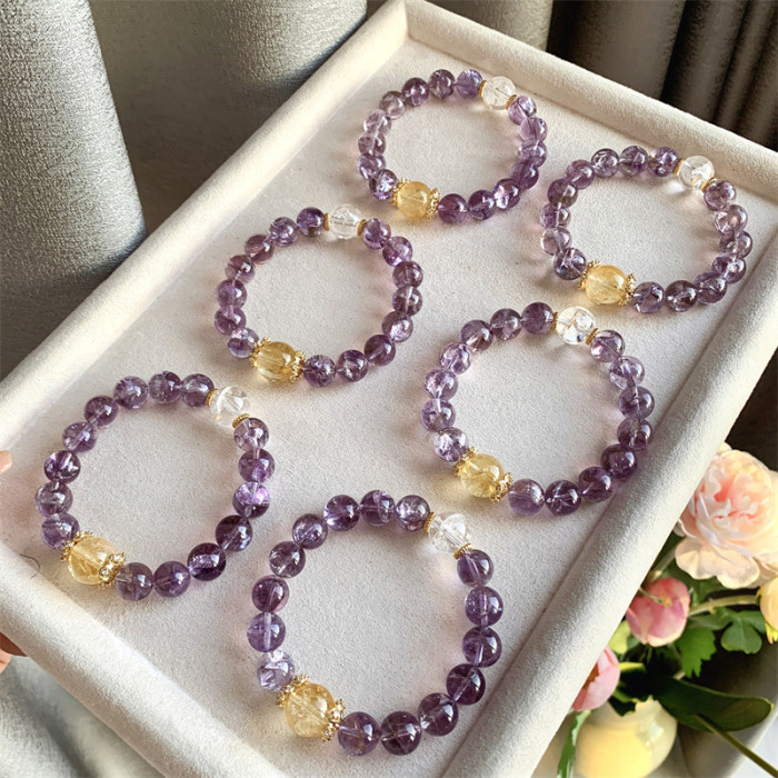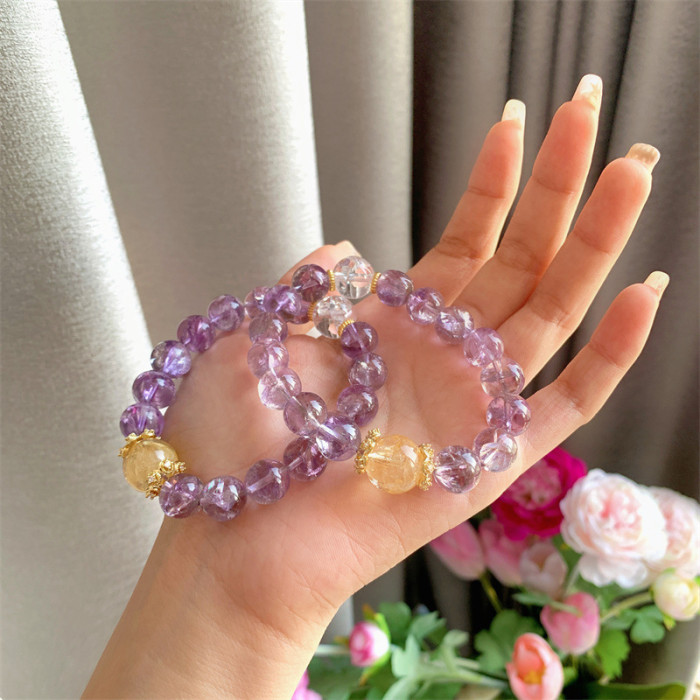 天然DIY紫阿賽手串碎冰冰帶紫水晶閃片水晶手鏈多樣性髮一