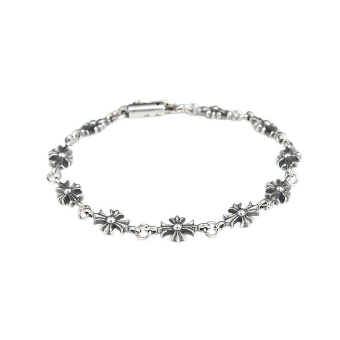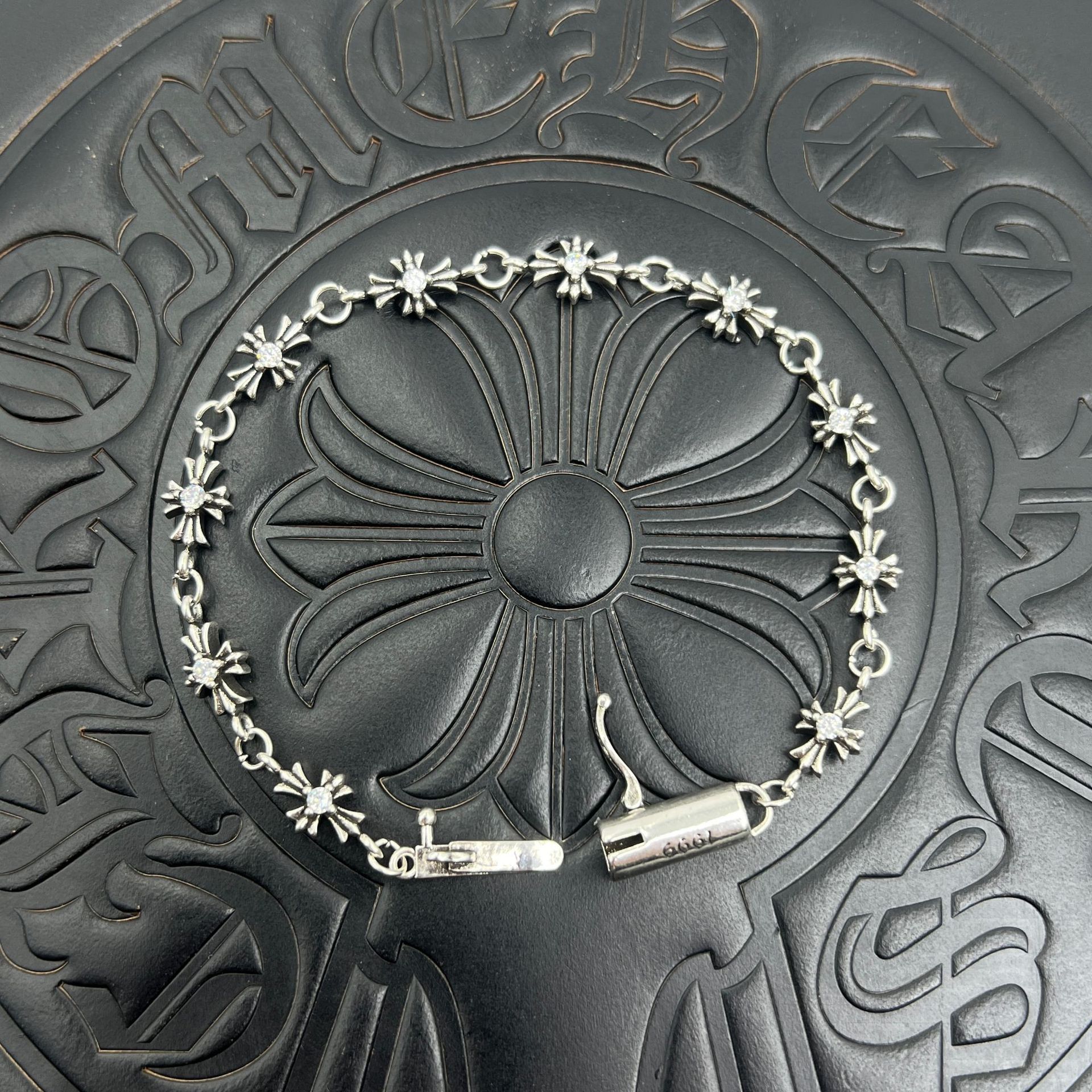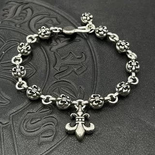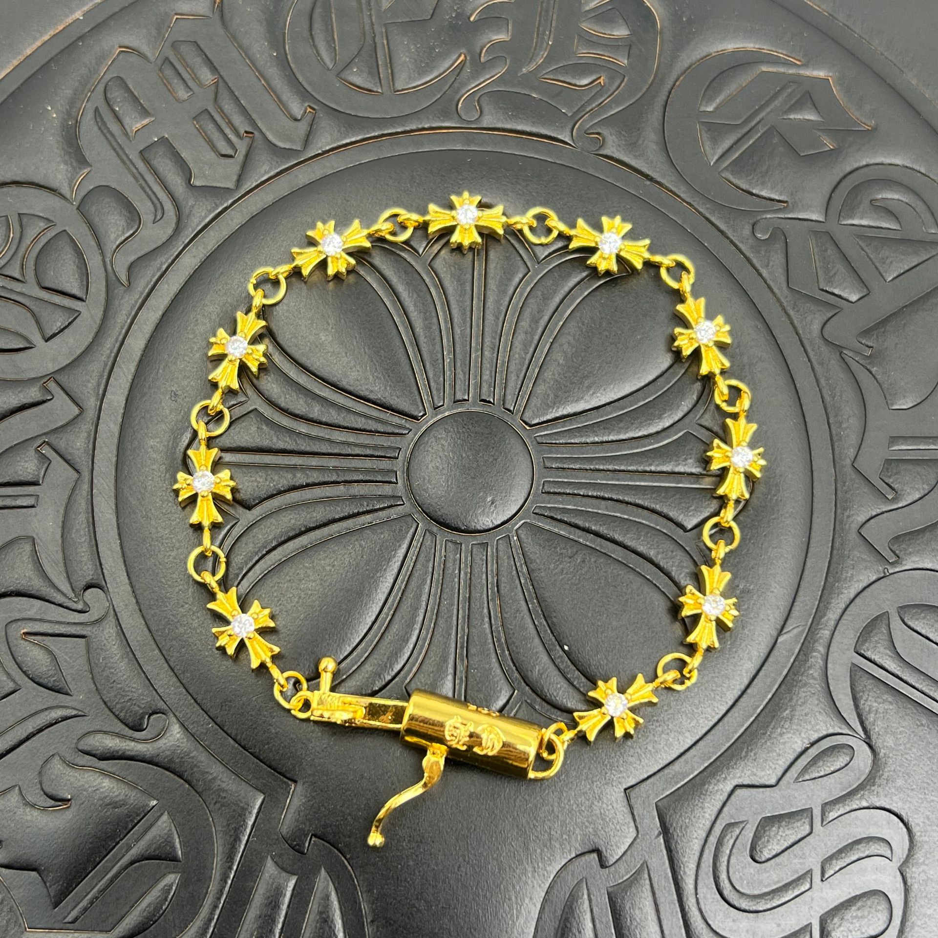 潮玩克羅伈手鏈復古粗字母手鏈骰子童軍花十字花滿花帶鑽金色