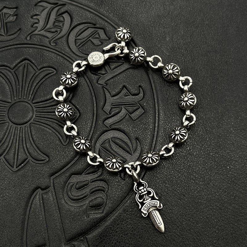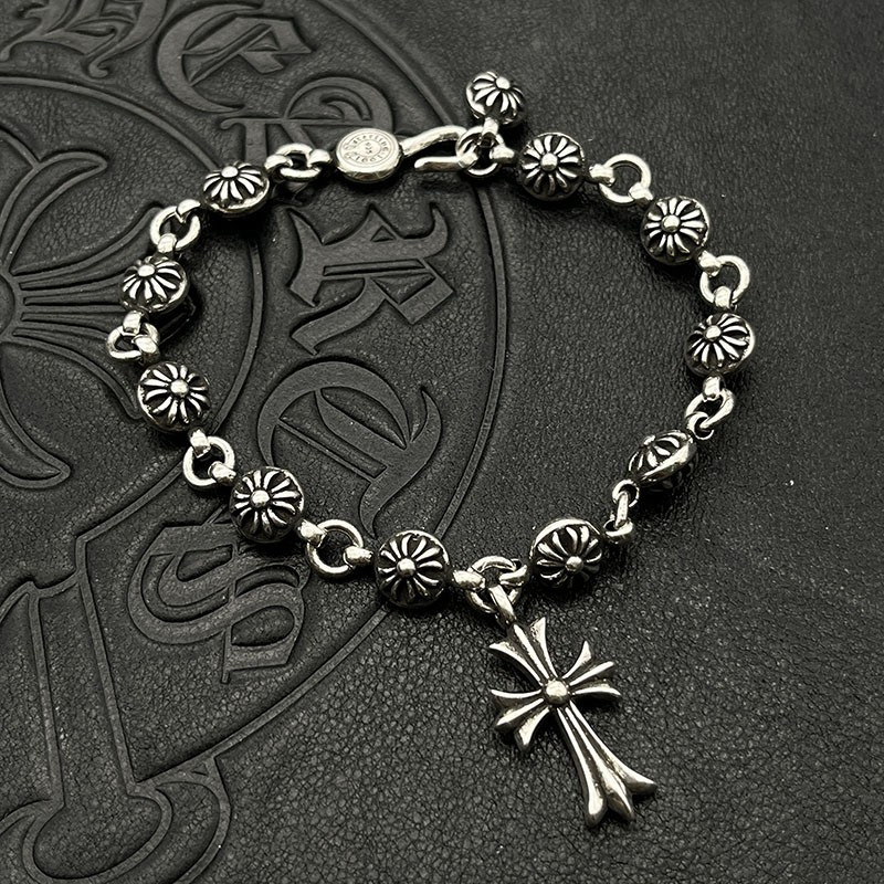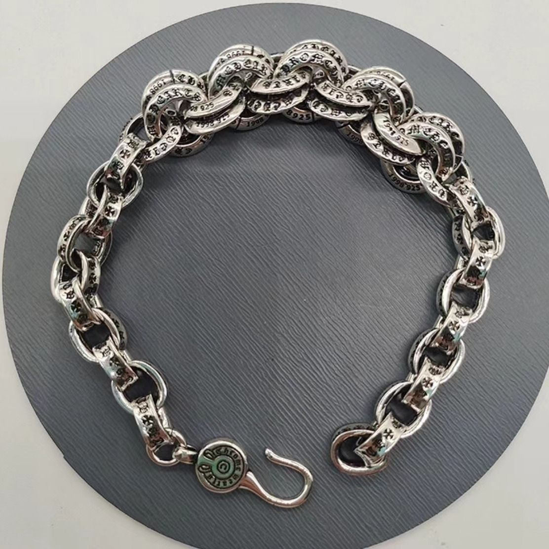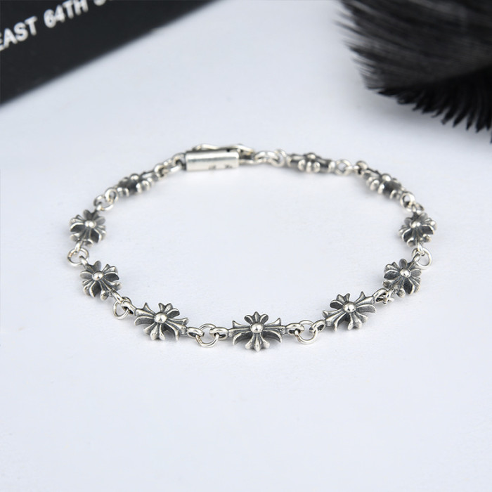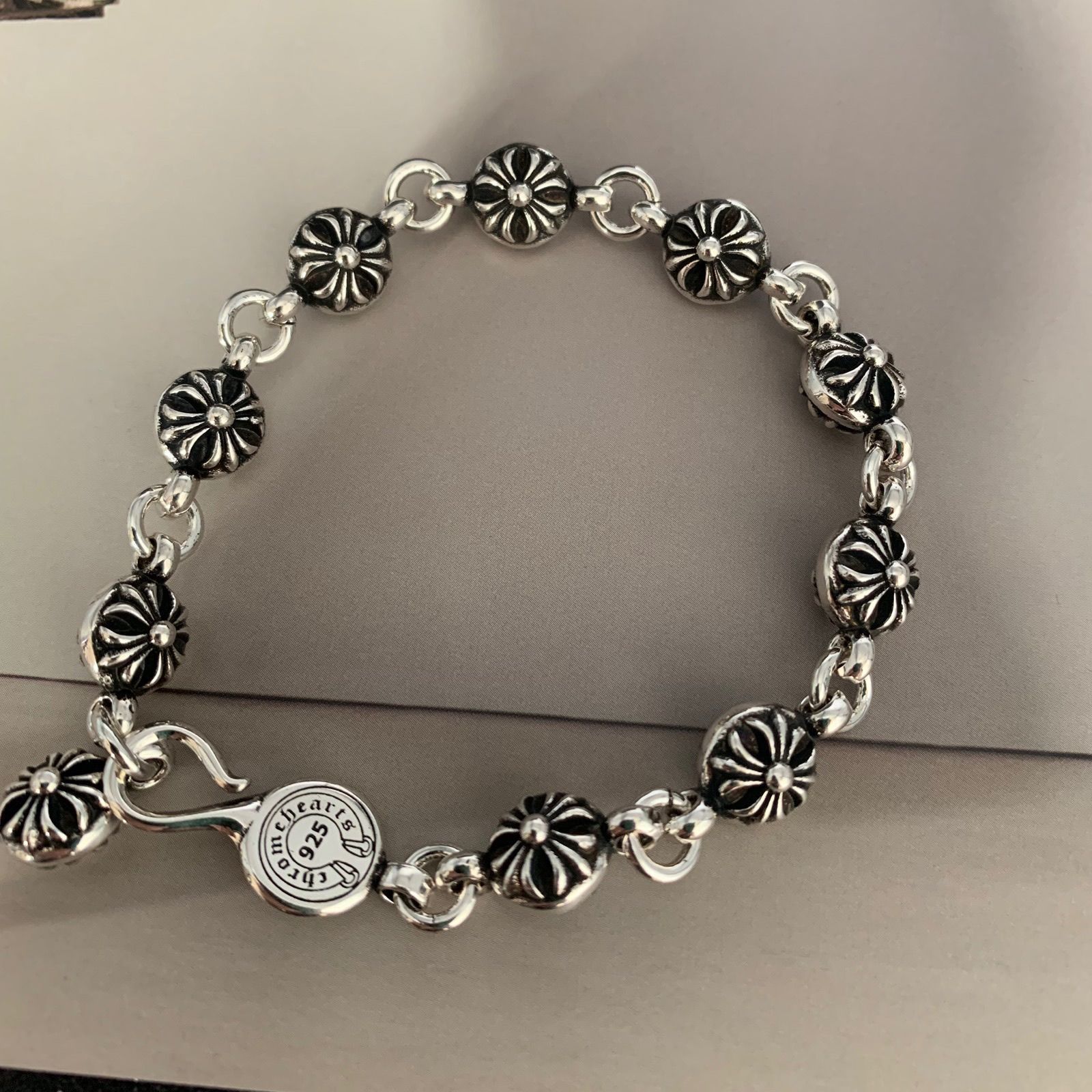 潮玩克羅伈手鏈復古粗字母手鏈骰子童軍花十字花滿花帶鑽金色