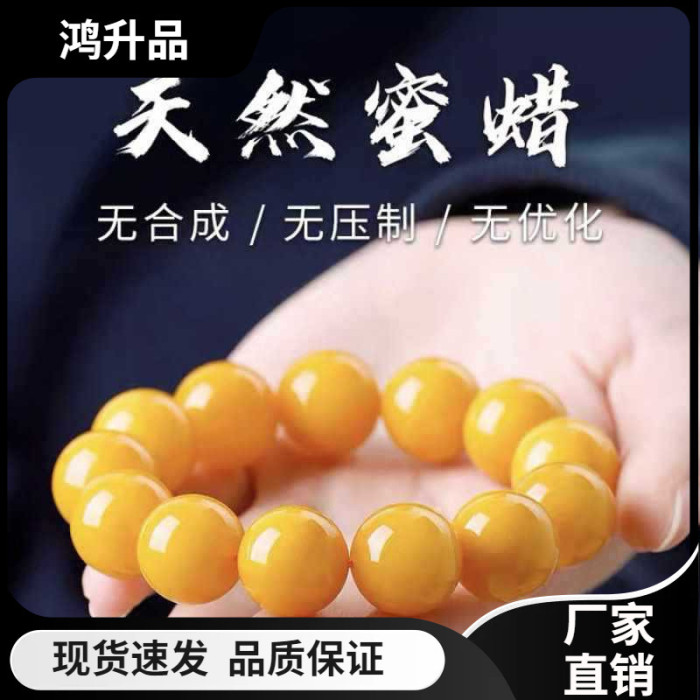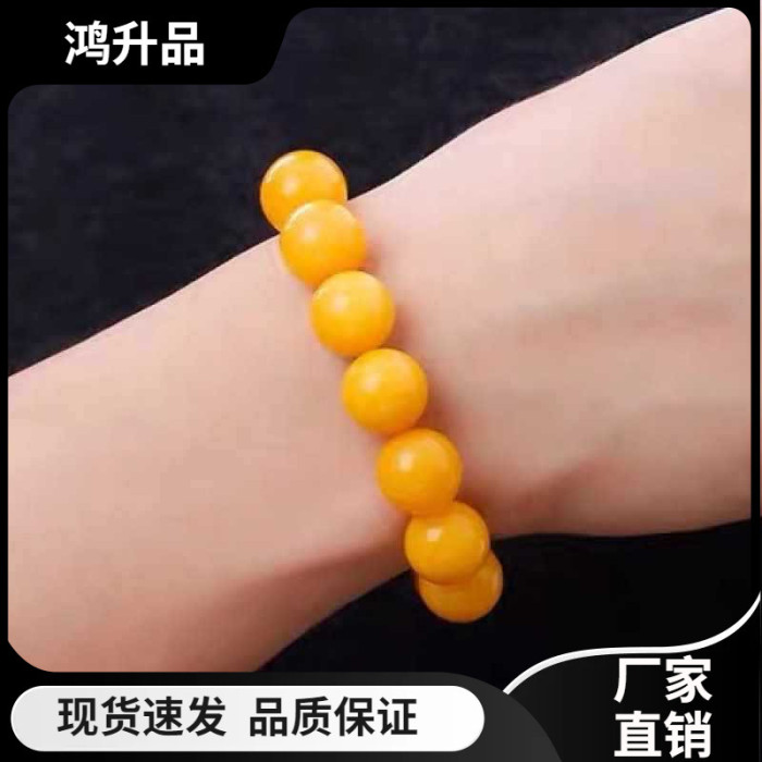 【證書諮詢客服】天然原礦真品蜜蠟手串男女士單圈雞油黃老蜜蠟手
