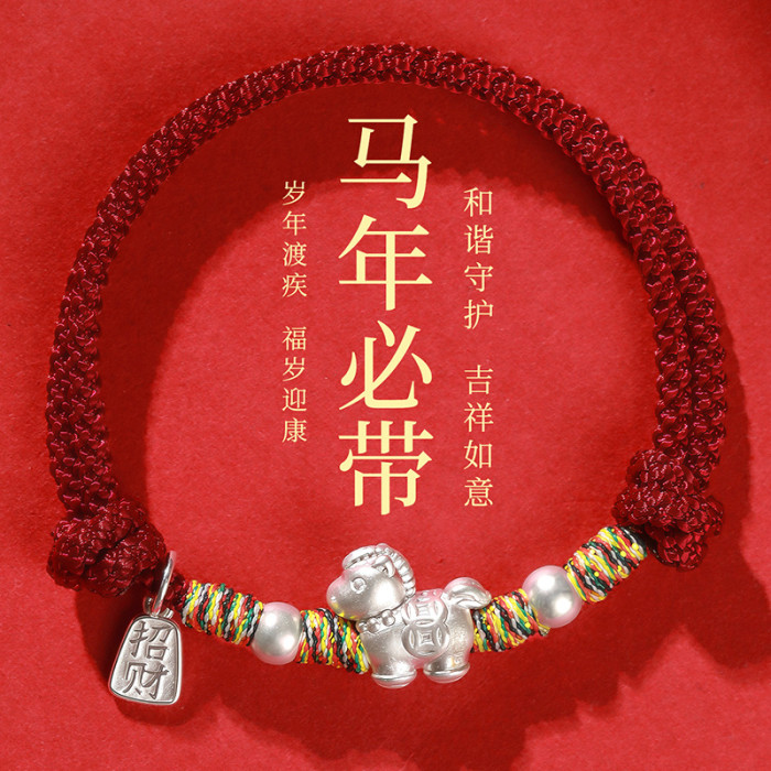 | 流行元素 | 足銀999新款純銀紅繩手鏈2026生肖馬本命年紅手繩小衆手鏈編織繩 |