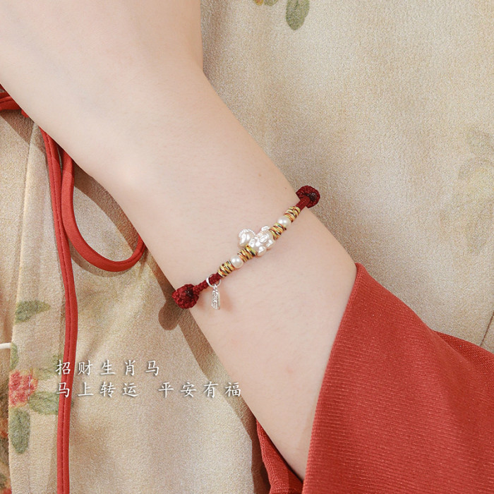 馬年本命年紅繩純銀手鏈足銀999男女生生肖馬禮物編織珮戴轉運珠