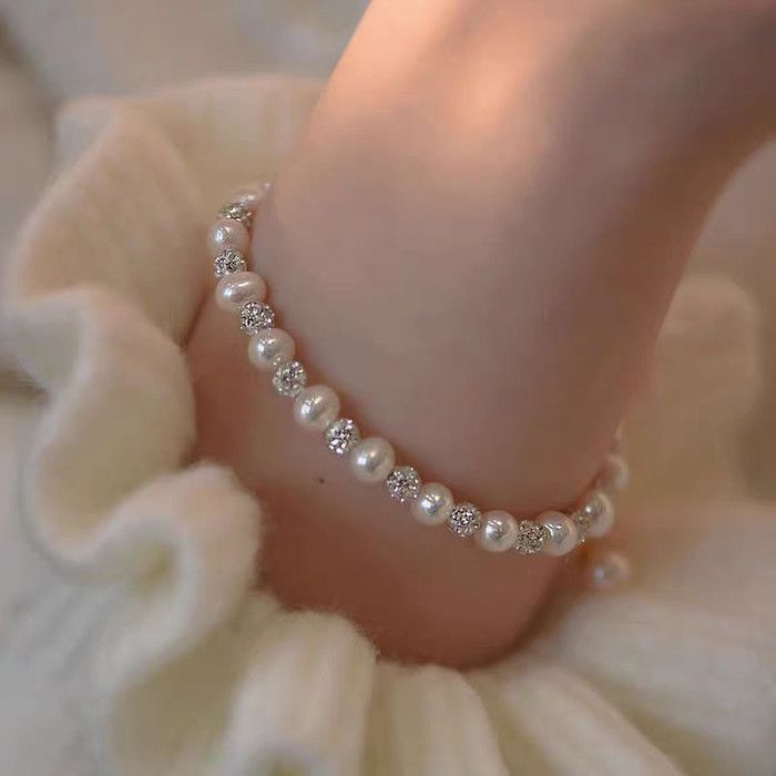 璀璨珍珠手鏈女S925純銀小衆個性網紅冷淡風淡水珍珠手串秋冬新款