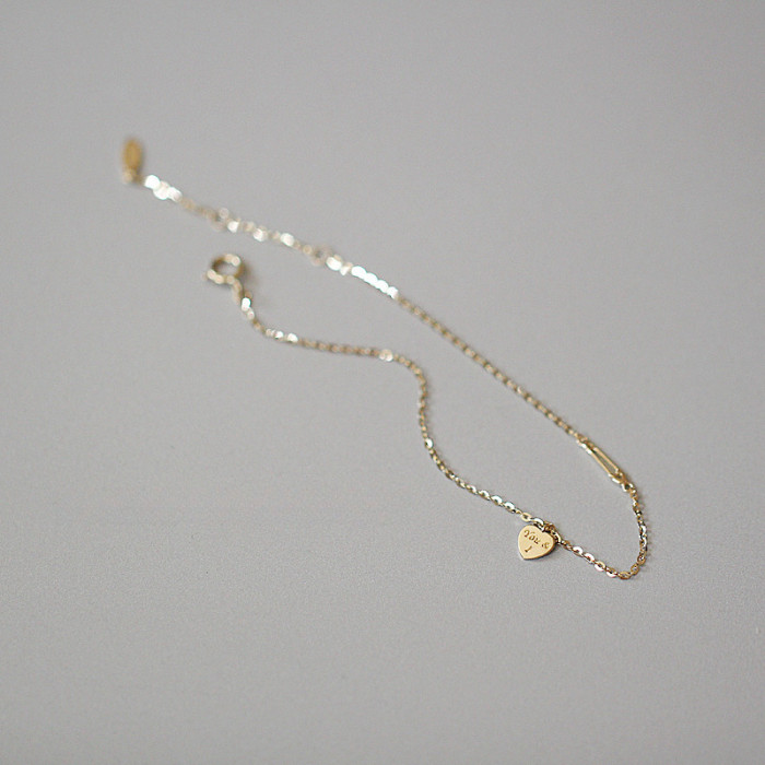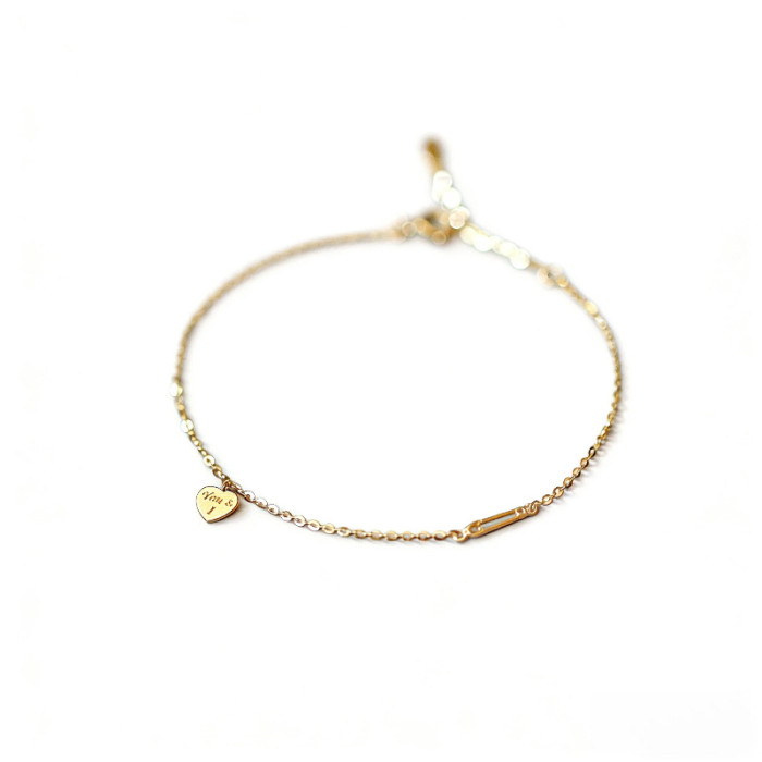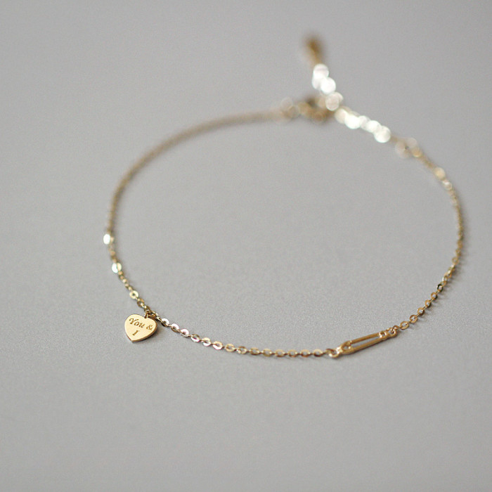 S925純銀鍍14K金細手鏈女款 氣質百搭簡約英文愛心別針迷你手飾品