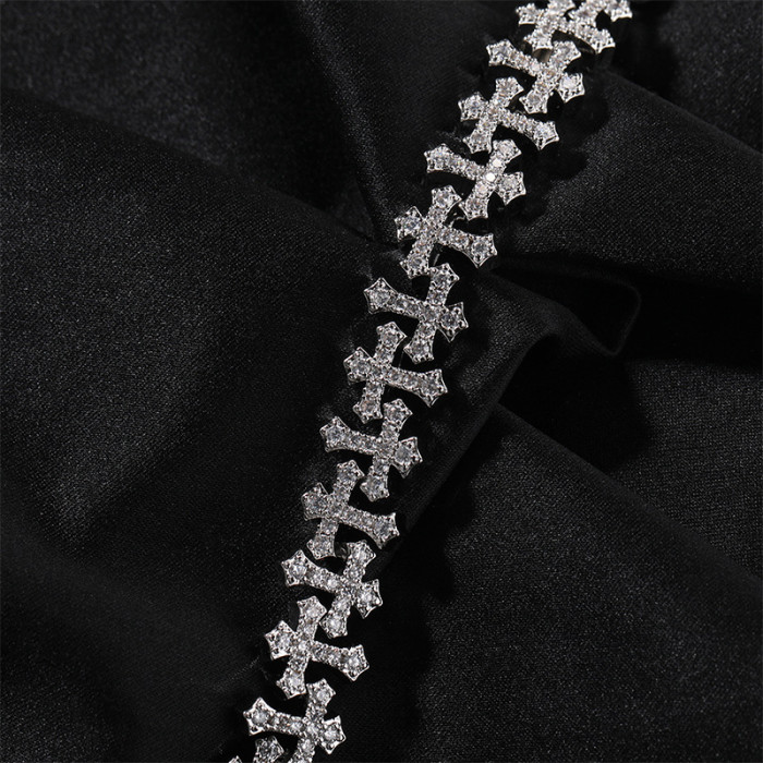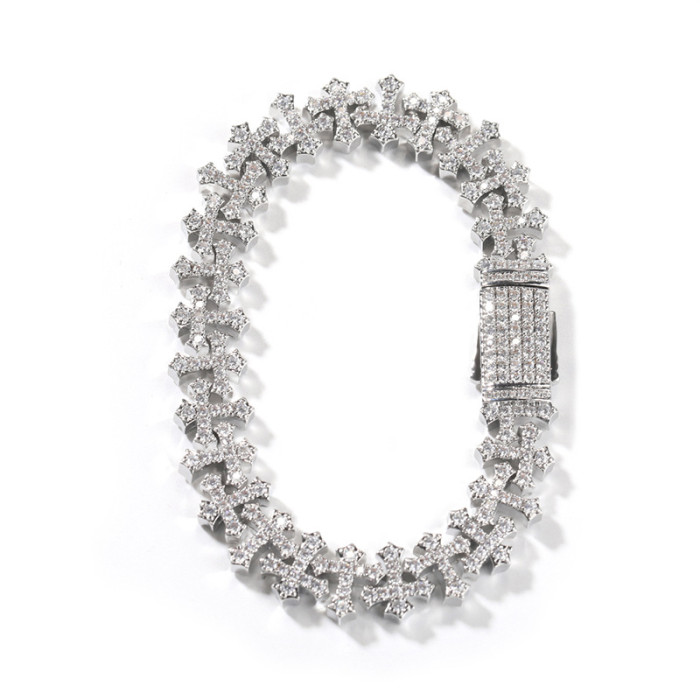 歐美嘻哈十字架手鏈ins男銅鑲鋯石11.5mm輕奢潮男女同款飾品