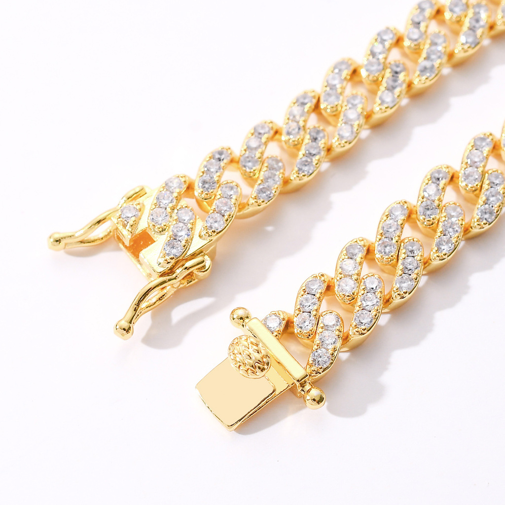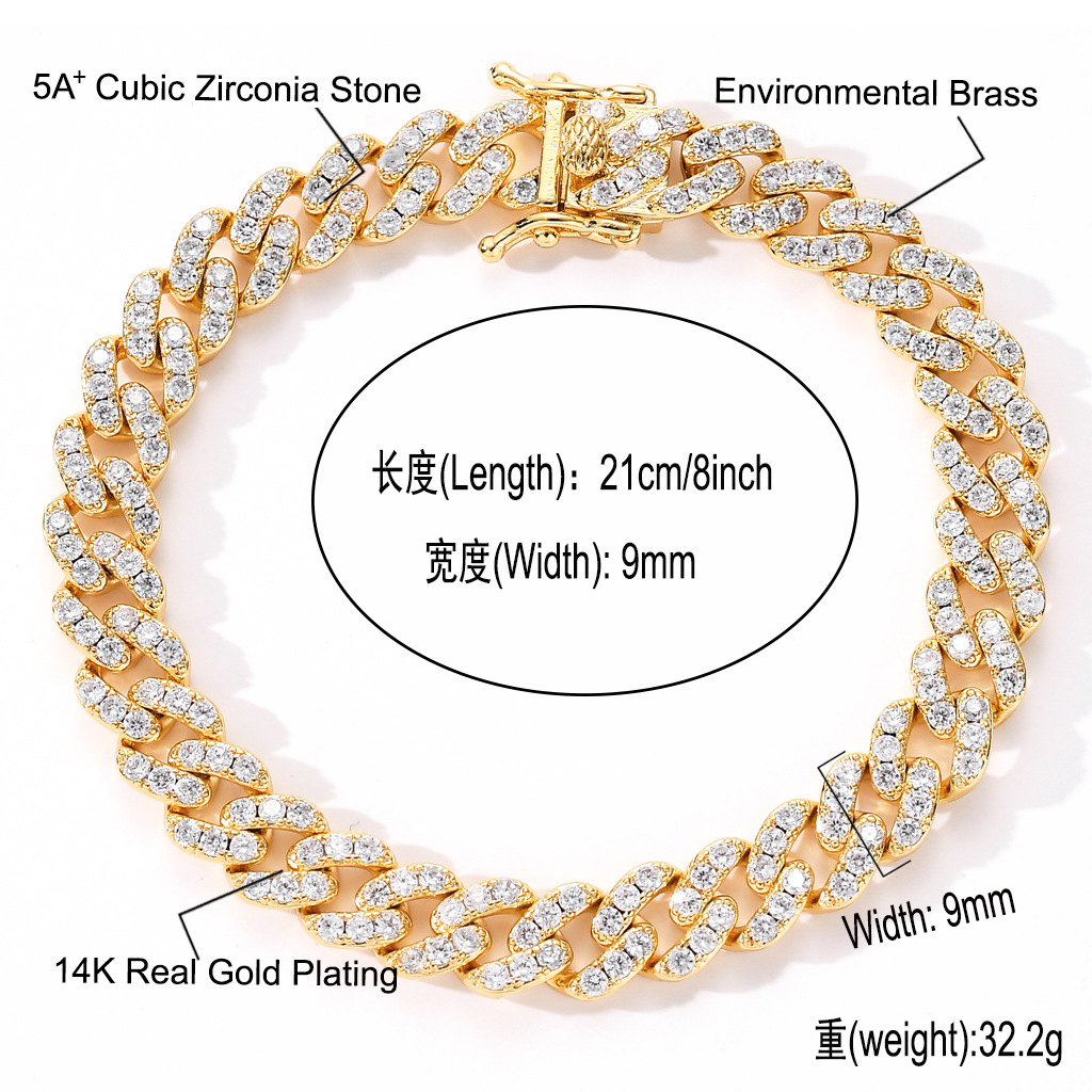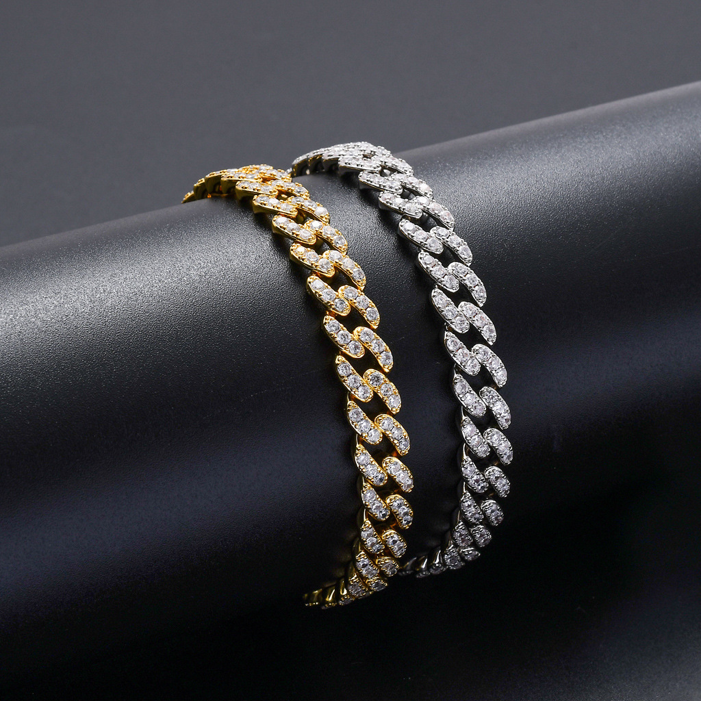 歐美嘻哈手鏈9mm單排鋯石古巴鏈男女款手鏈個性簡約嘻哈配飾
