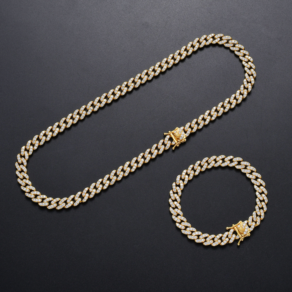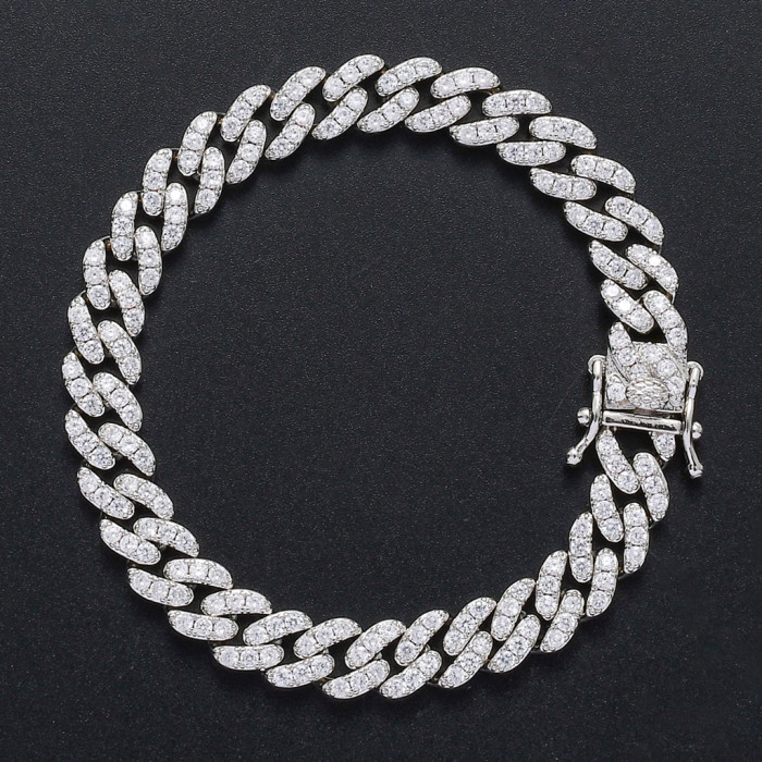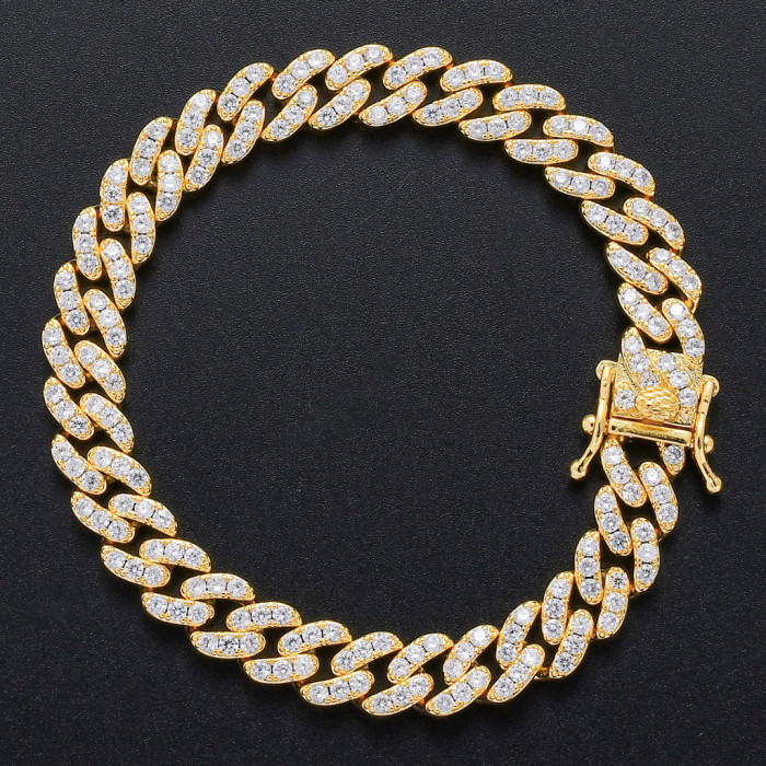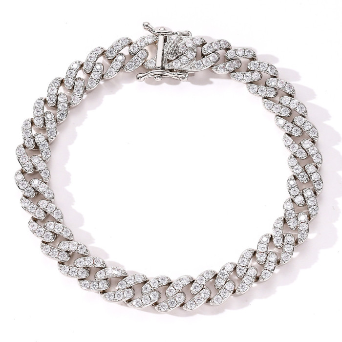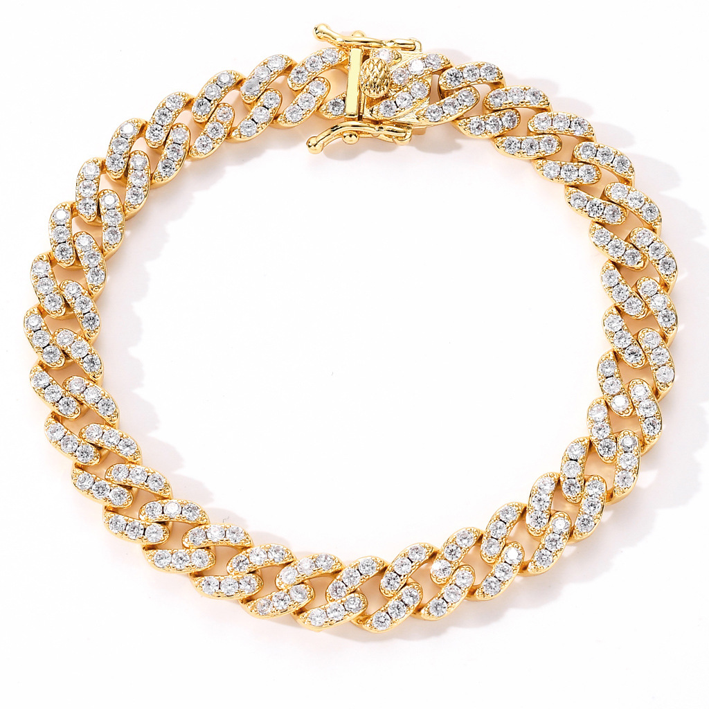 歐美嘻哈手鏈9mm單排鋯石古巴鏈男女款手鏈個性簡約嘻哈配飾