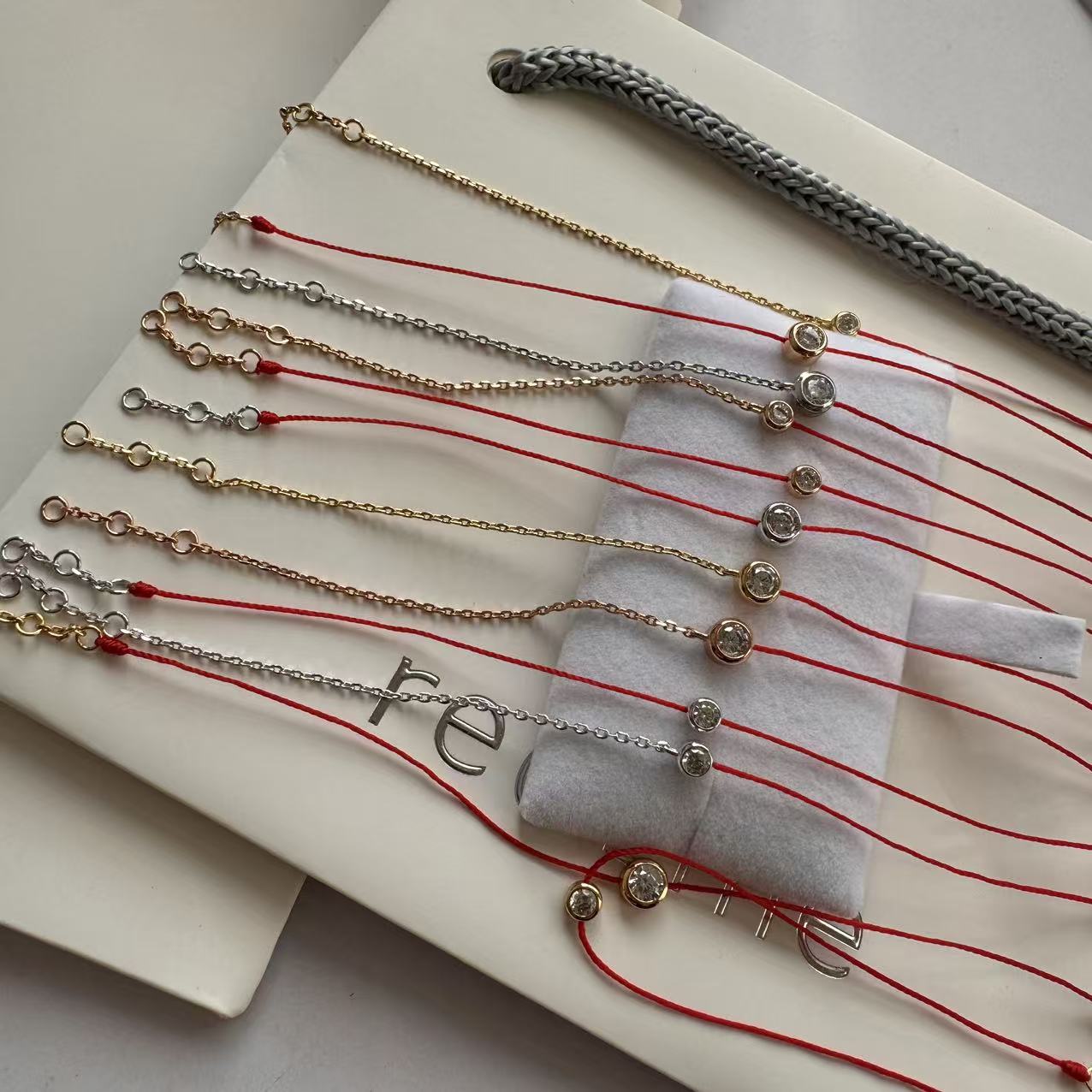 小紅繩手鏈圓形10分20分鑽編織半繩半鏈Pure系列本命年轉運手繩男