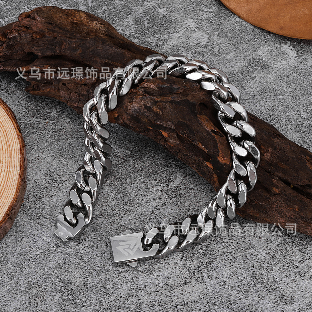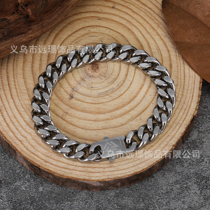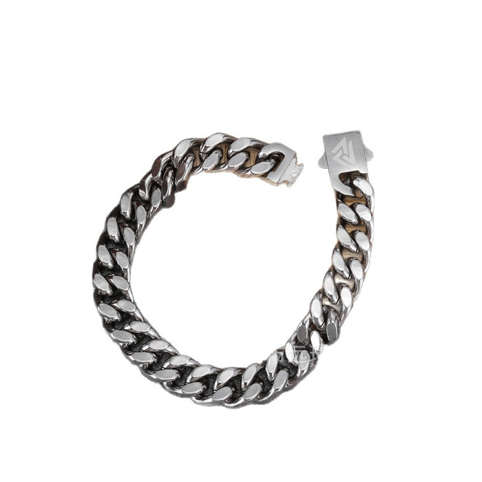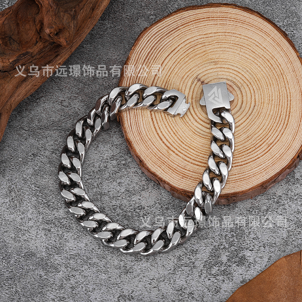 歐美古巴不鏽鋼手鏈飾品男鐳射腐蝕個性化製定嘻哈潮流女手鏈