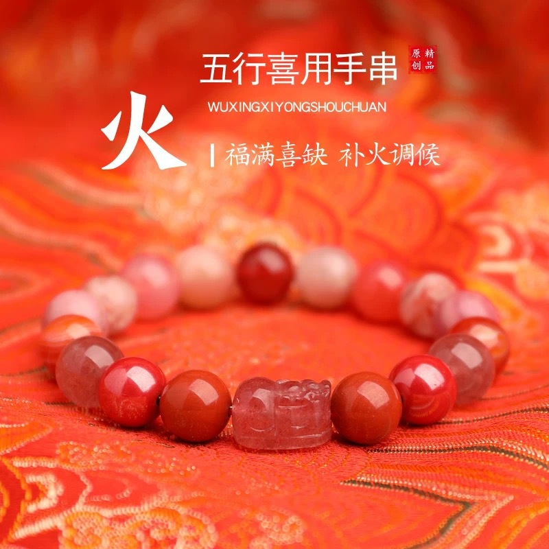 五行貔貅火屬性手串缺火補火喜用火天然水晶多寶南紅瑪瑙吉祥手鏈