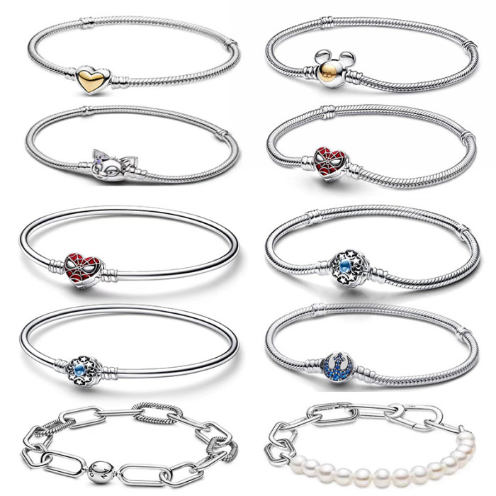 潘家白銅鍍銀母親節系列愛心新品蜘蛛蛇骨鏈DIY配件基礎鏈ME手鏈