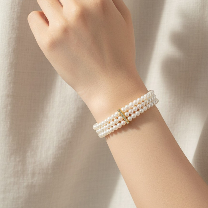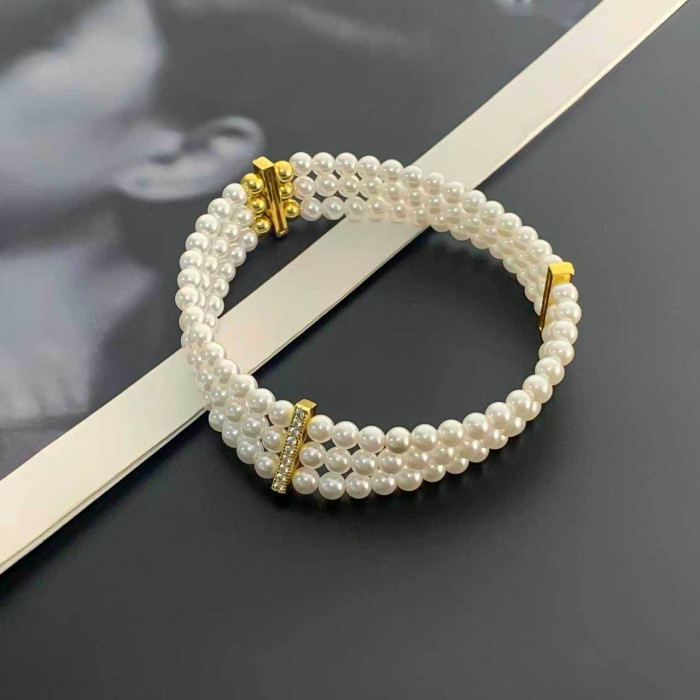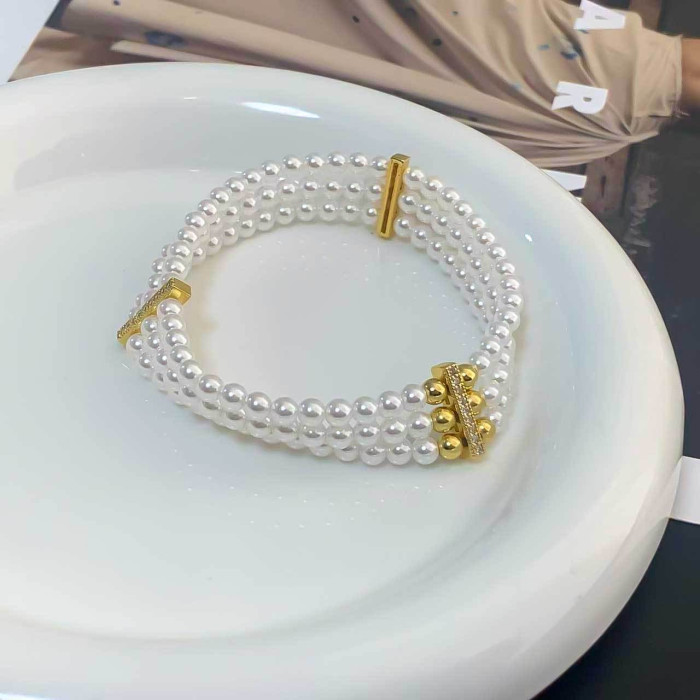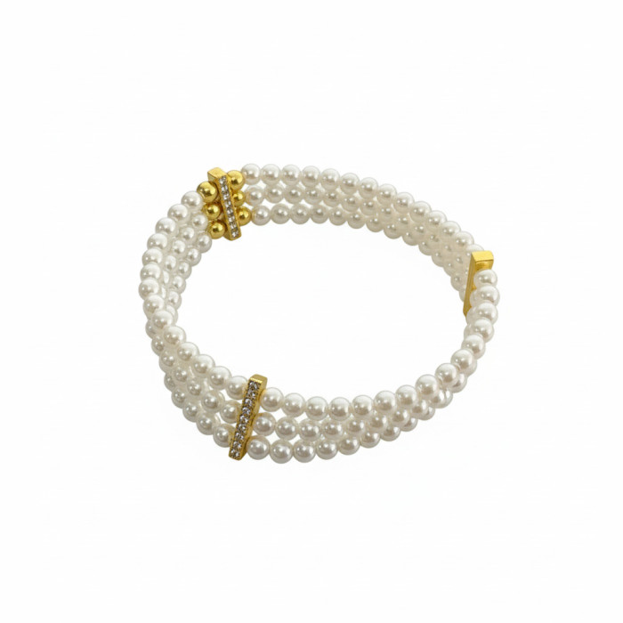 歐美三層珍珠手鏈閃鑽多層彈力珍珠手鏈可拉伸彈性仿珍珠手鐲
