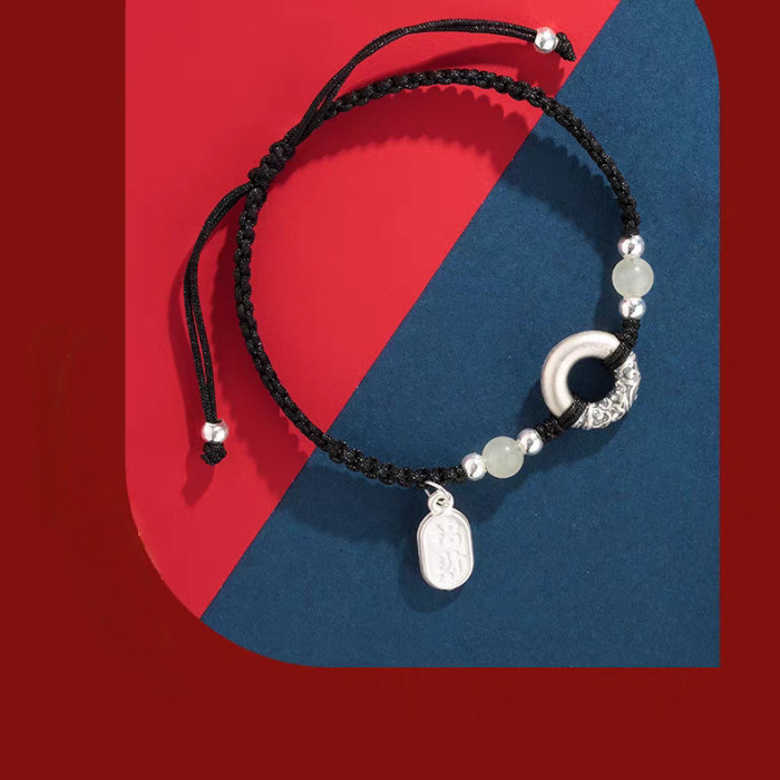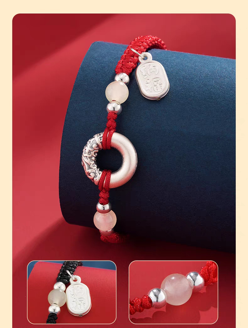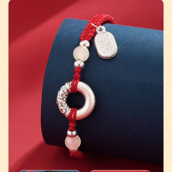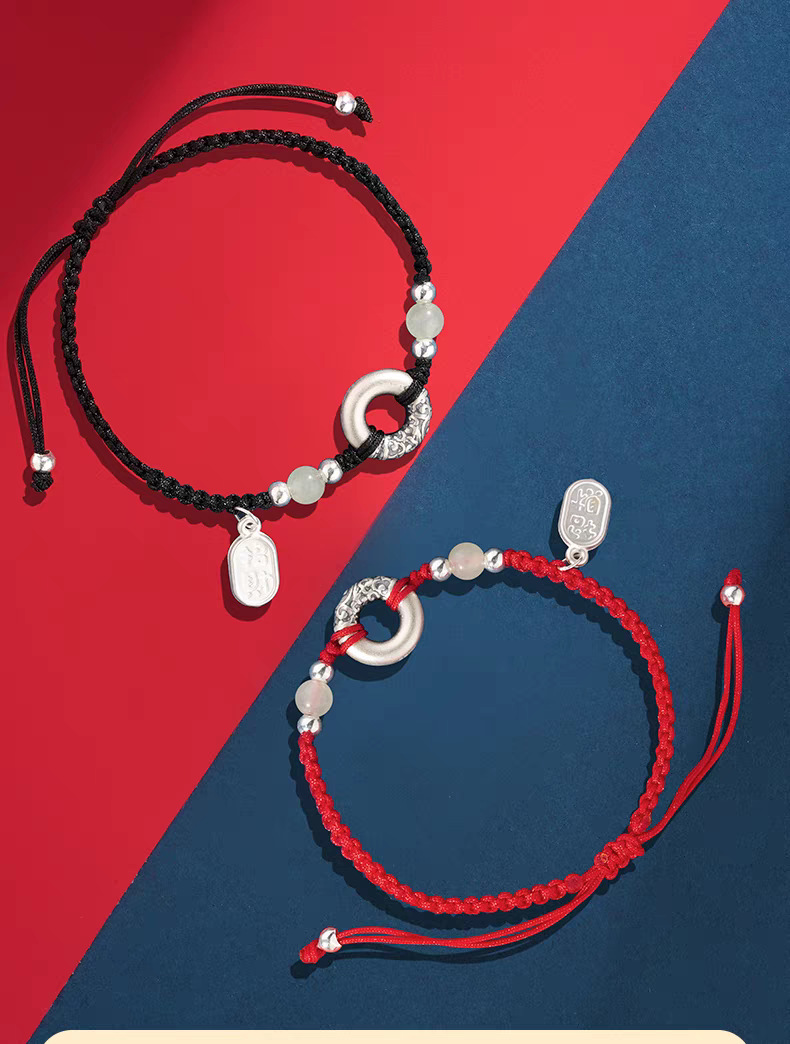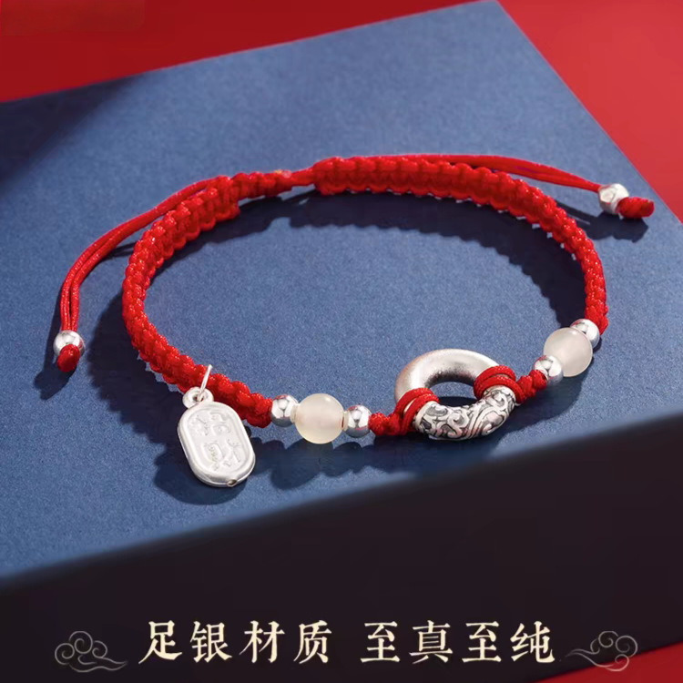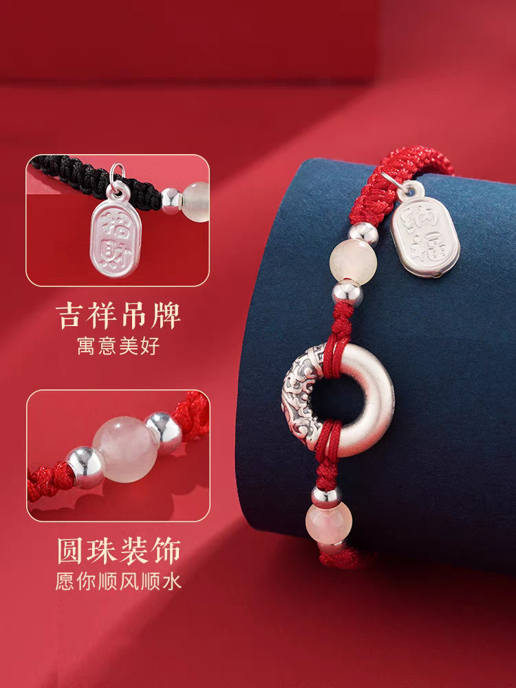 足銀999招財納福平安釦手鏈紅繩情侶手繩編織繩手飾繩子國風男女