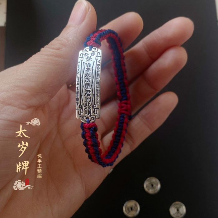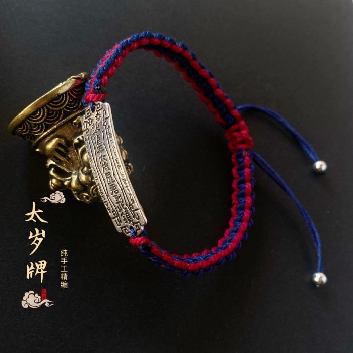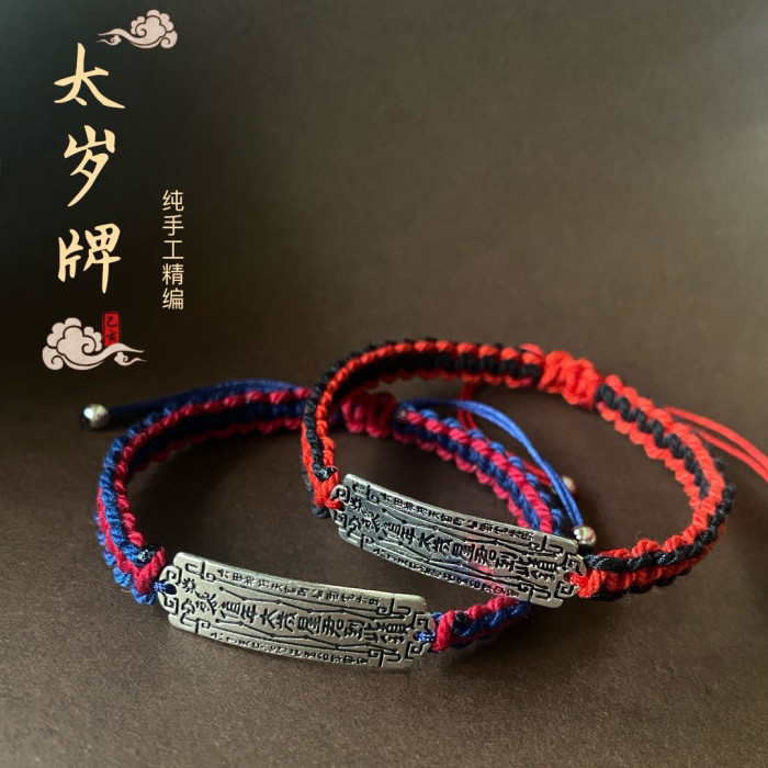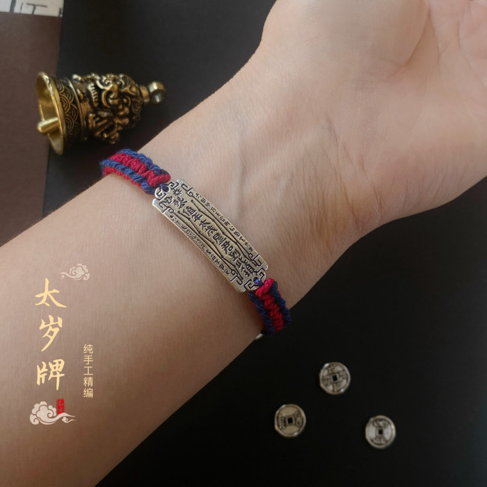 龍結平安符手牌本命年吉祥手繩藏銀手工編織可調節太嵗男手鏈