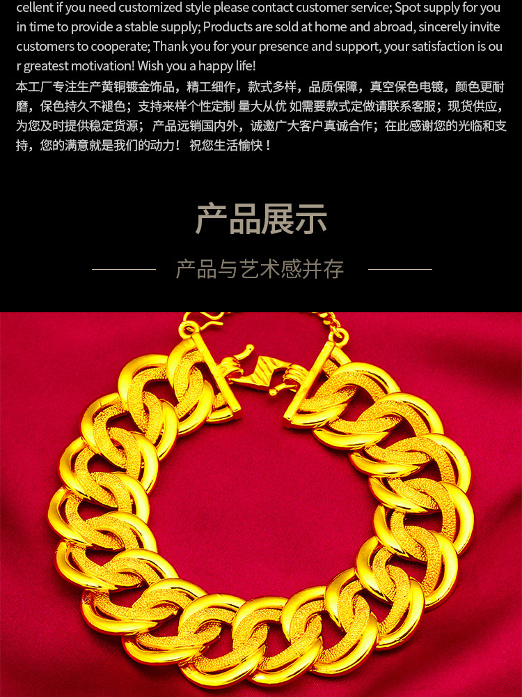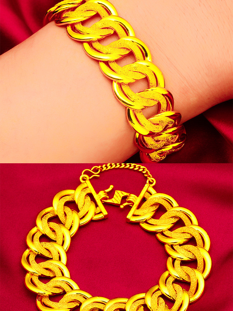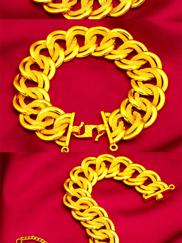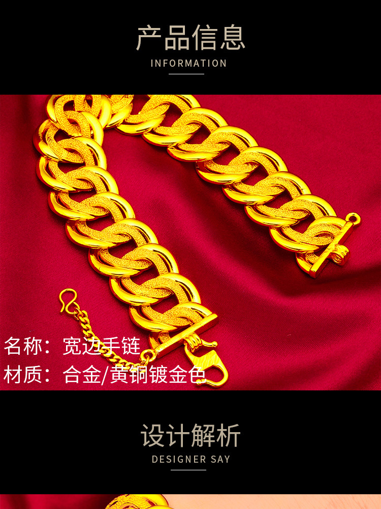 越南沙金男士霸氣寬邊手鏈20毫米寬男士手鏈手串寬邊手鏈