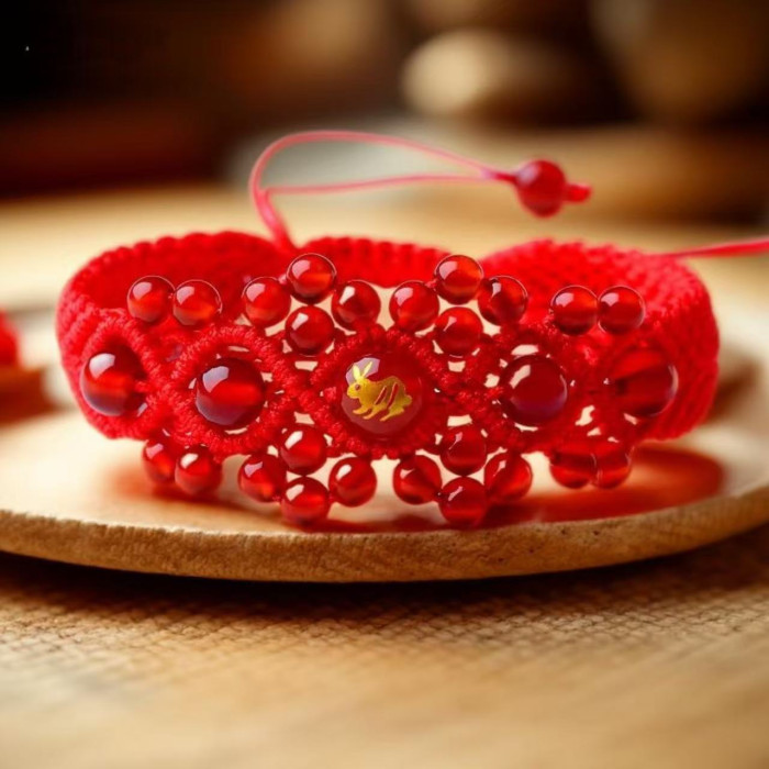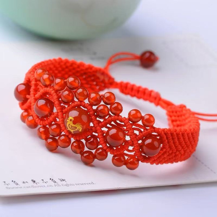 2026馬年本命年紅繩手鏈十二生肖屬馬鼠牛兔蛇紅瑪瑙手工編織男女