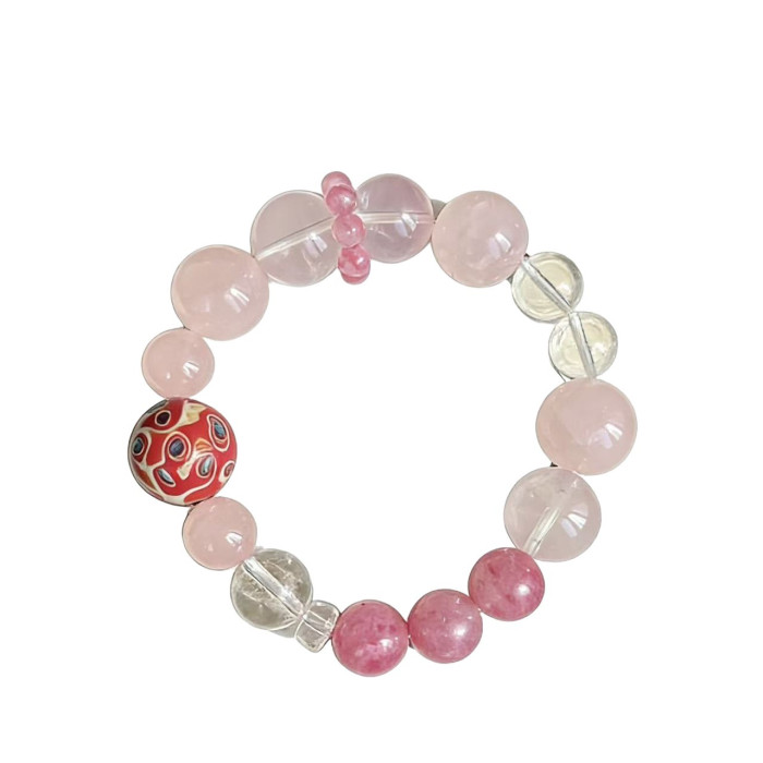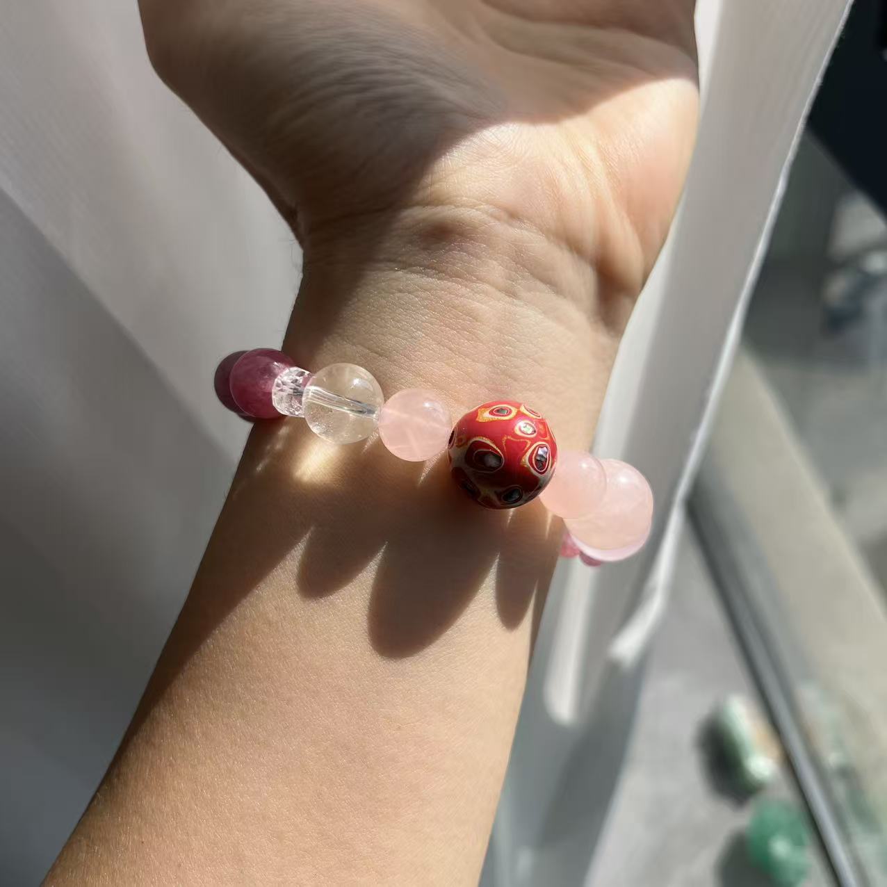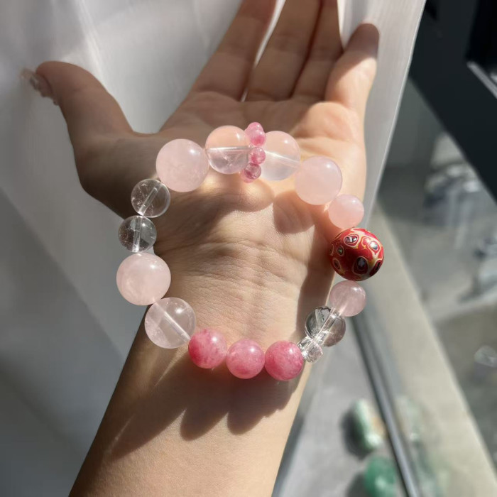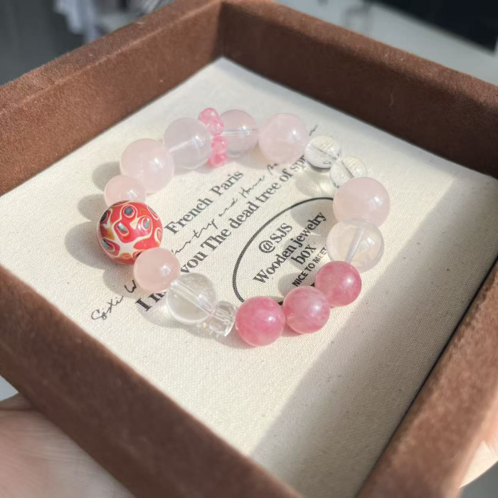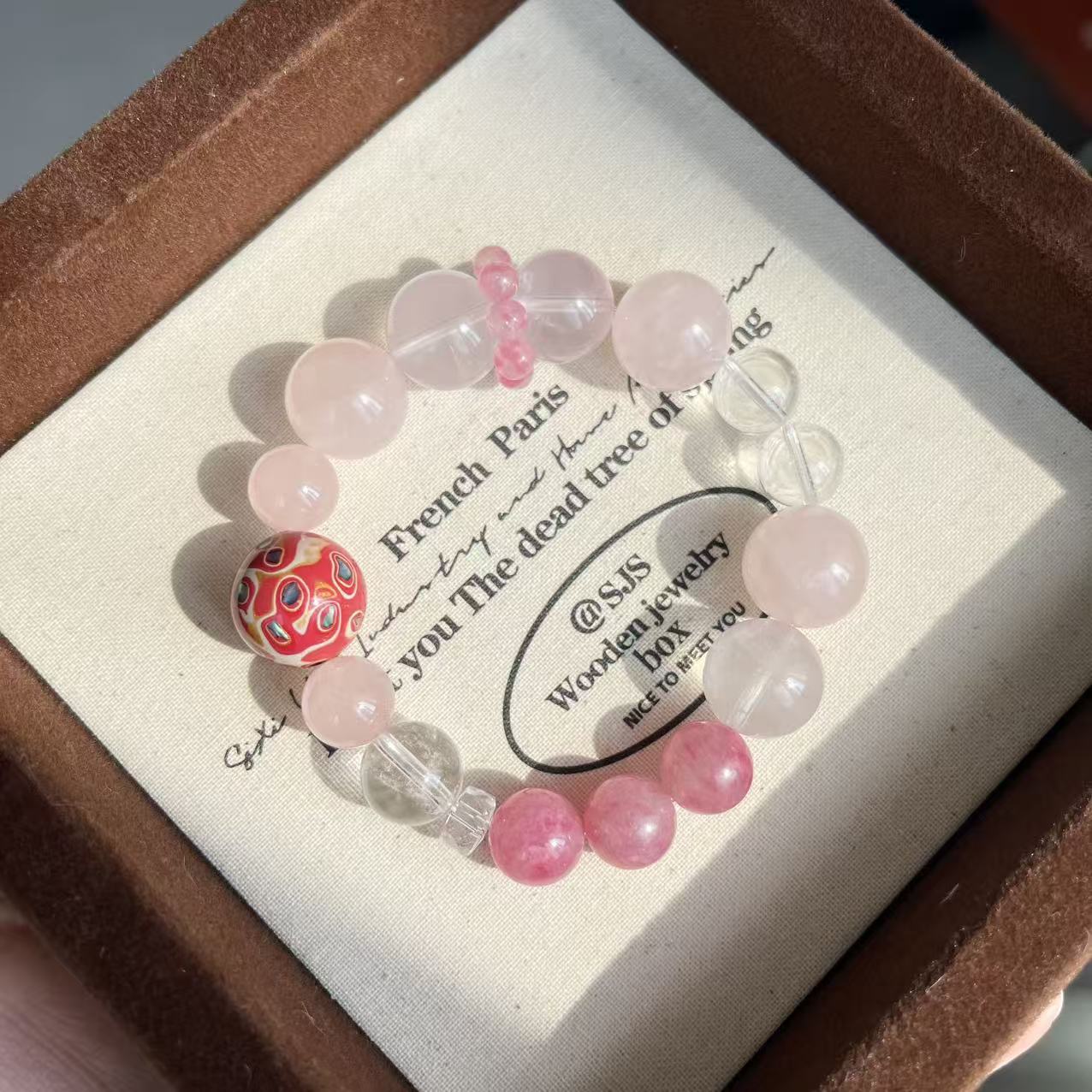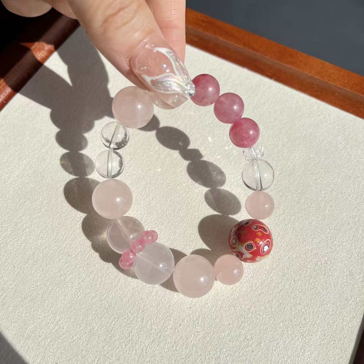 【粉面含春】天然大漆珠櫻花雨手串粉晶白水晶小衆設計溫柔百搭