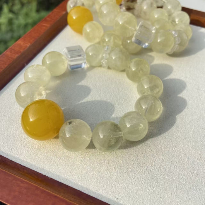 【檸檬雪寶】天然檸檬晶水晶手串女款白水晶黃瑪瑙高級感手鏈