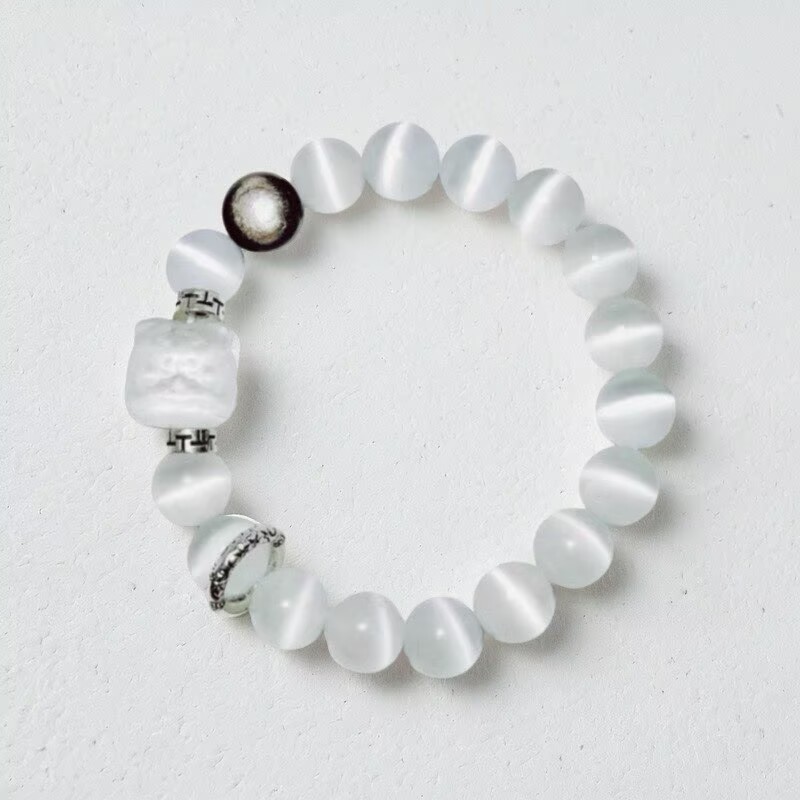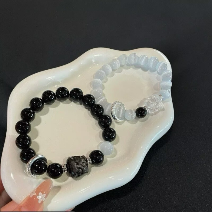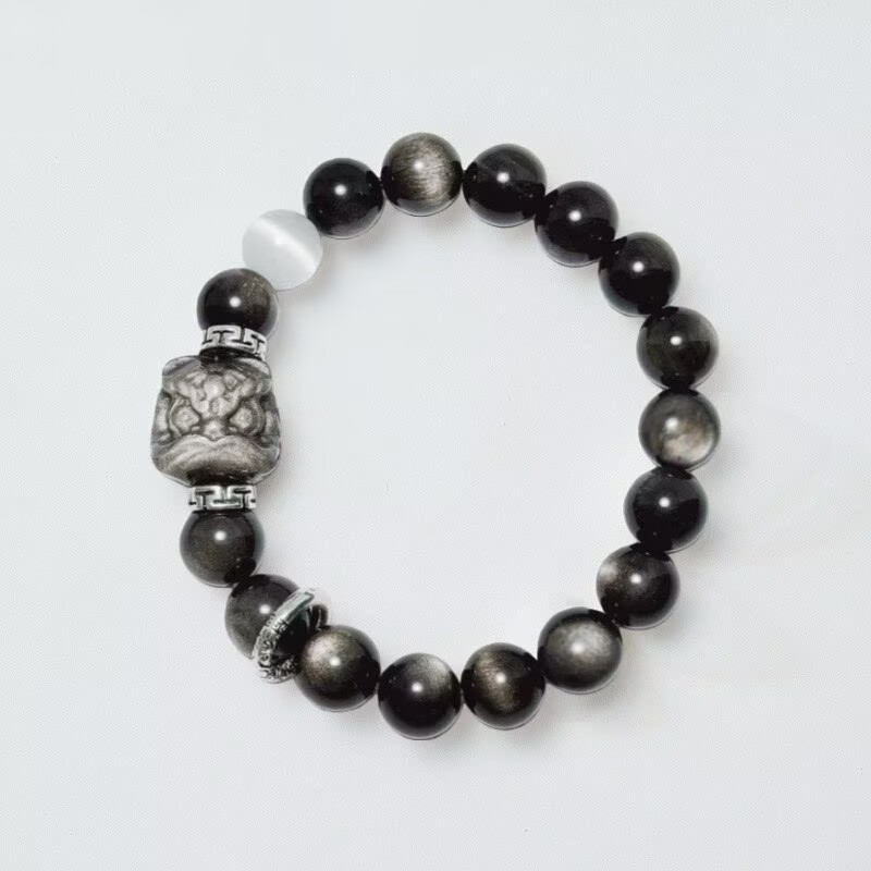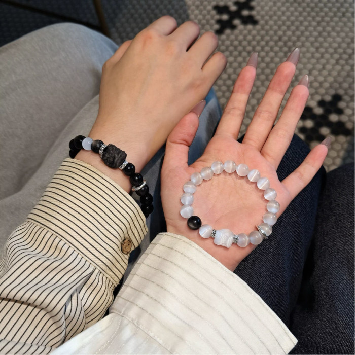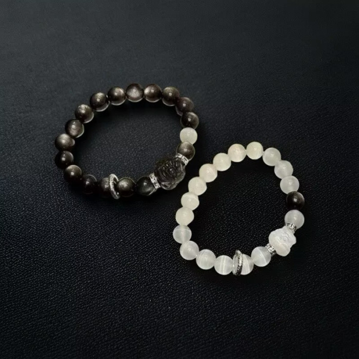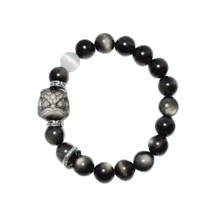 風禾珠寶情人節禮物天然銀曜石黑曜石貓眼石醒獅情侶手鏈一對生日