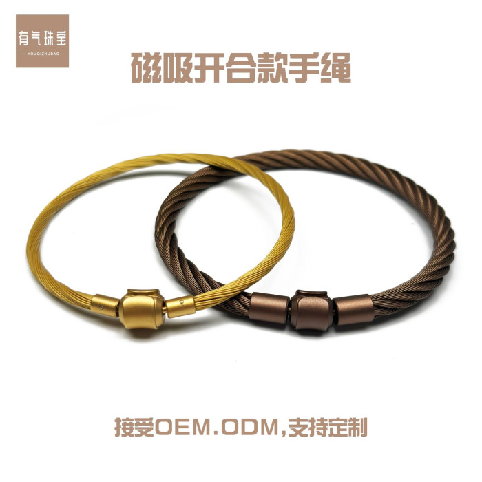 不鏽鋼周家手繩進口軟絲配繩編織生生轉運珠配件黃金色男女款手鏈