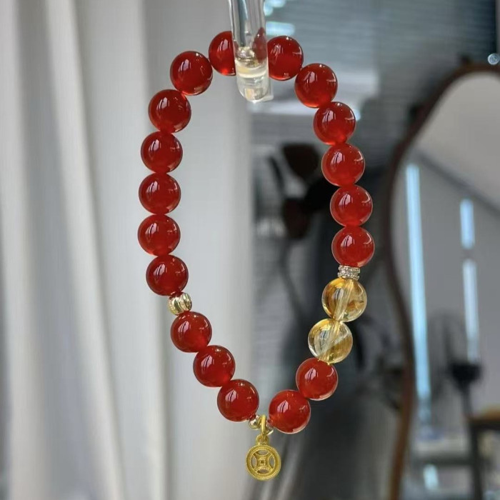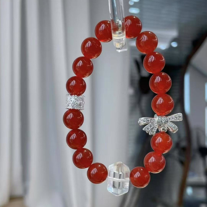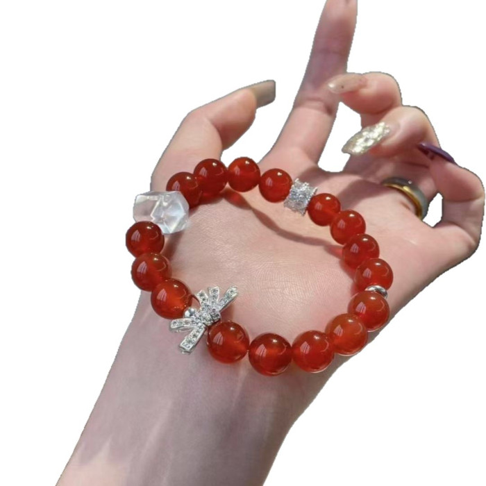 高顔值紅瑪瑙串珠手鏈女ins閨蜜時尚設計感手串本命年甜美禮物
