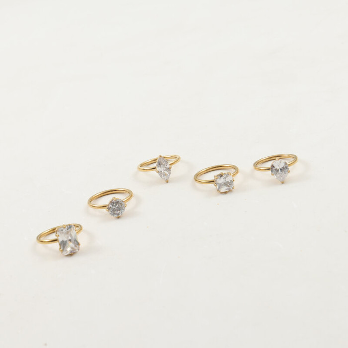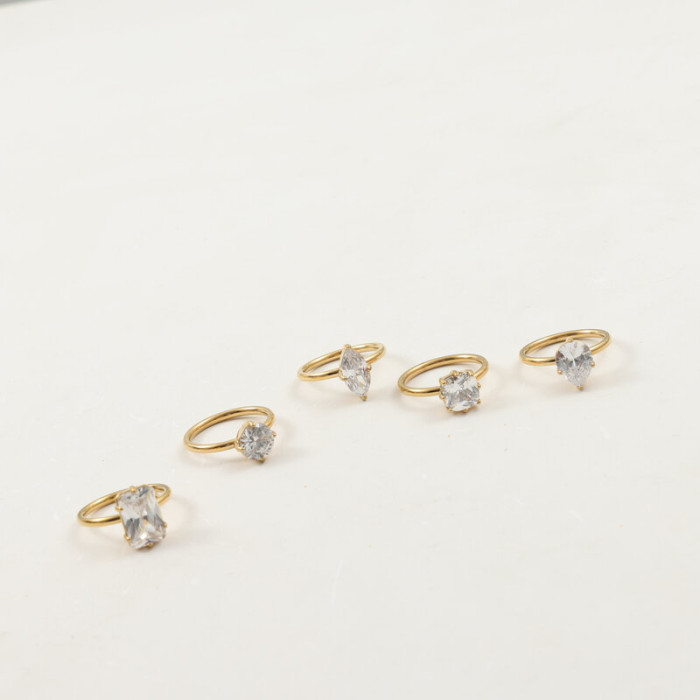 誇張 大鋯石 簡約 戒指 鈦鋼電鍍18k金
