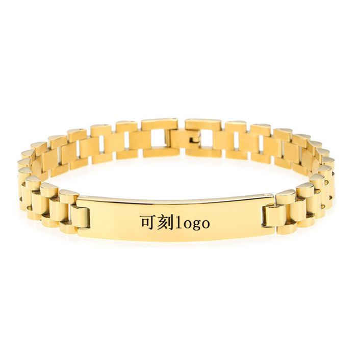歐美彎牌錶帶鈦鋼手鏈情侶時尚不鏽鋼男士手錶鏈可自由調節
