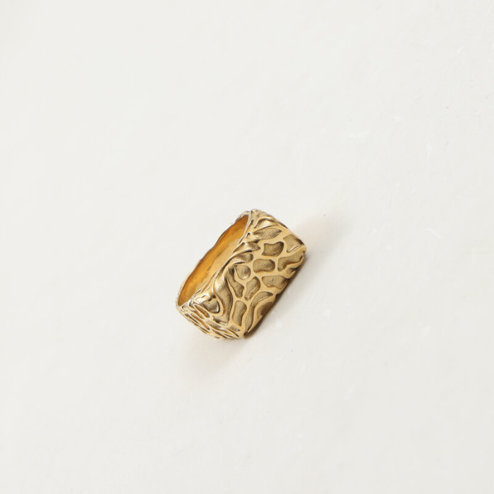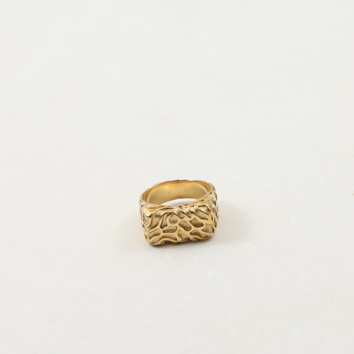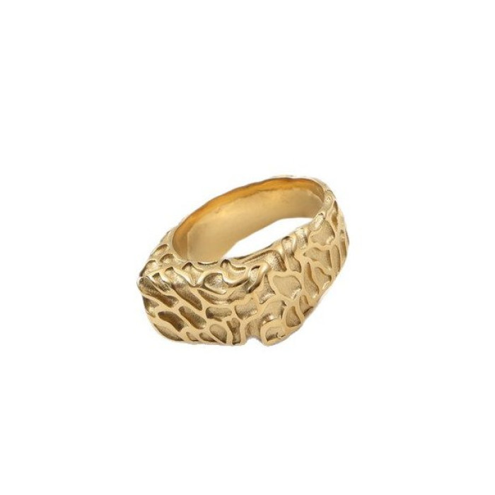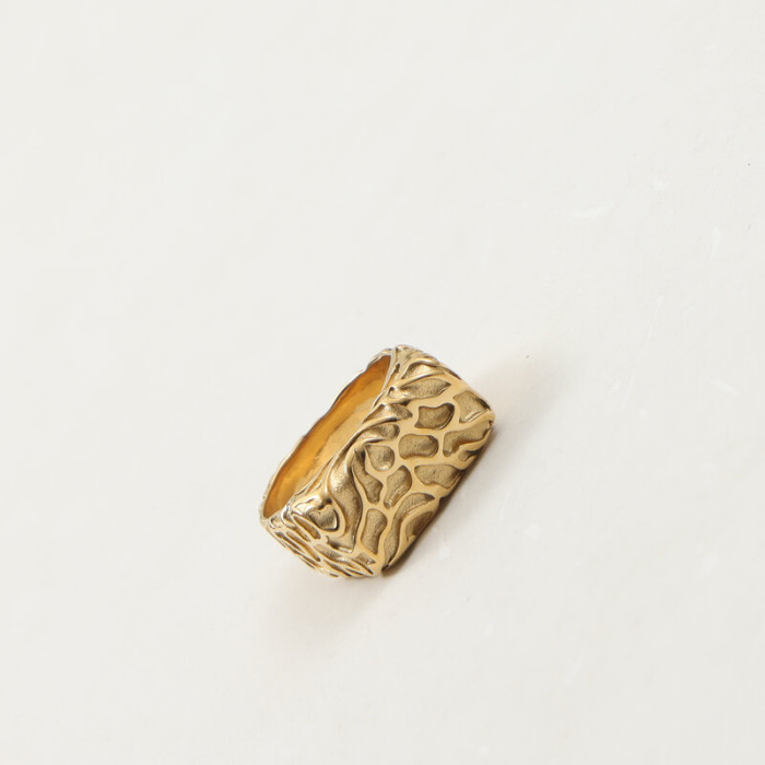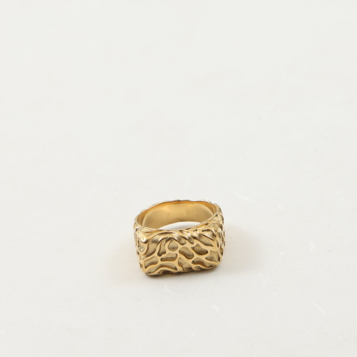 隕石坑 D字戒指 印章戒指 鈦鋼電鍍18k金