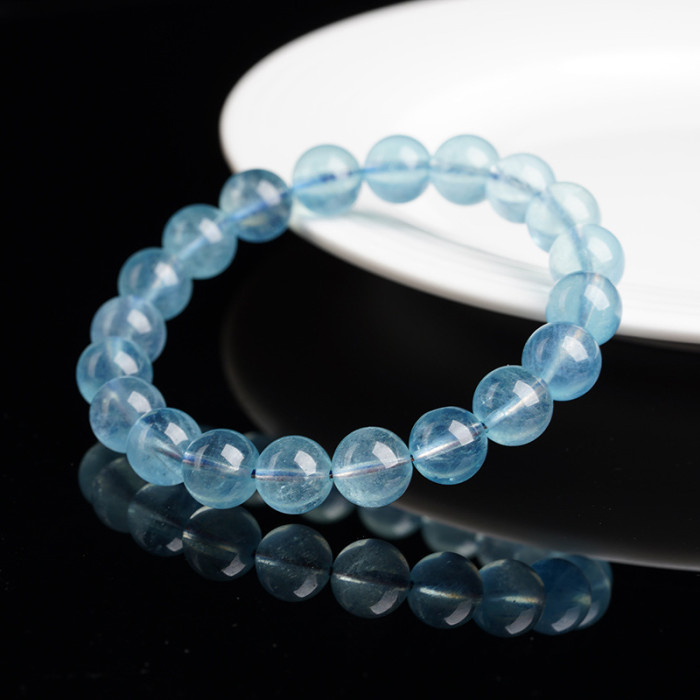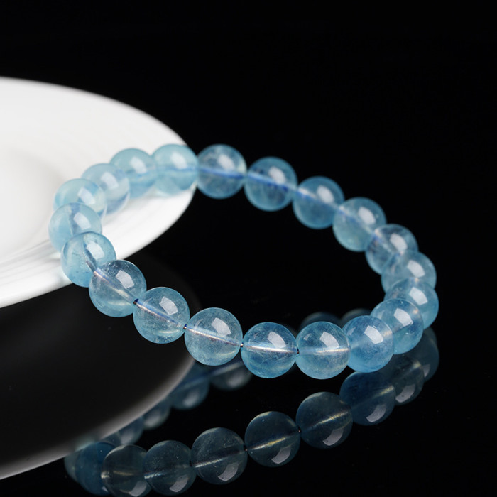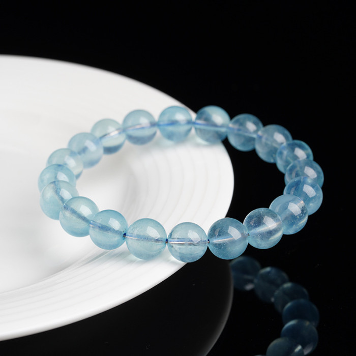 月嶼海藍寶手鏈冰種天然海藍寶天空藍手串女圓珠DIY手工飾品串珠
