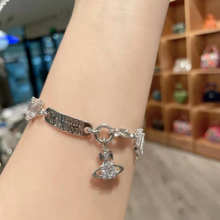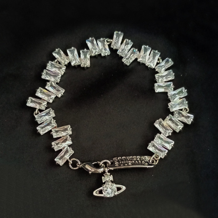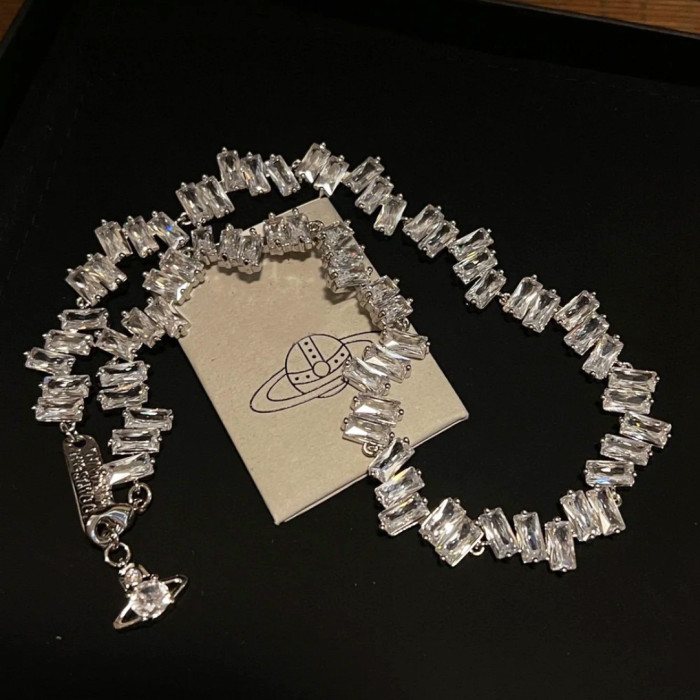 西太後高階方形鋯石手鏈 項鍊 輕奢氣質閃耀聚焦C位款毛衣鏈
