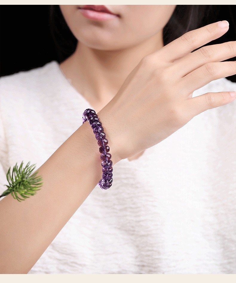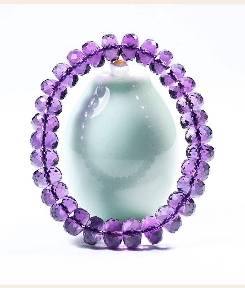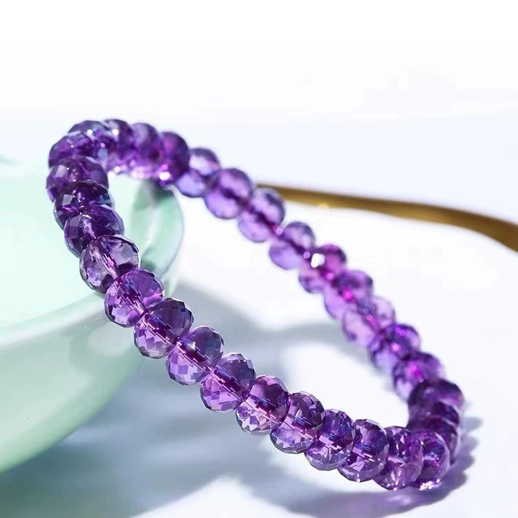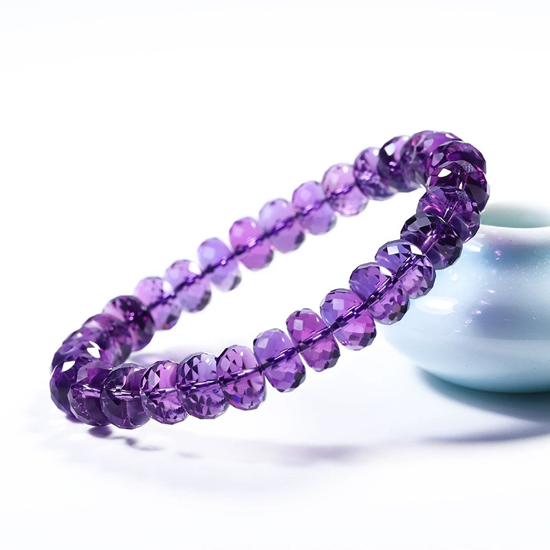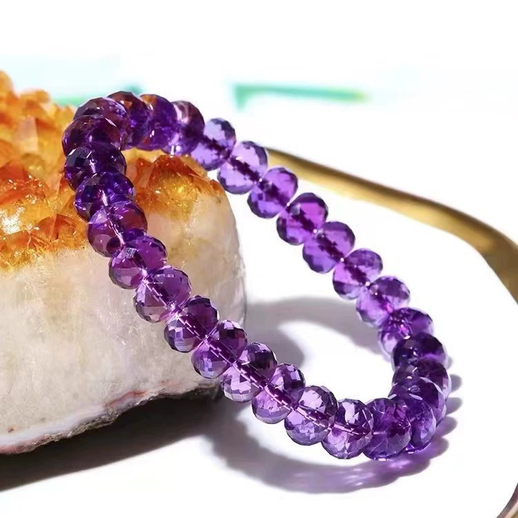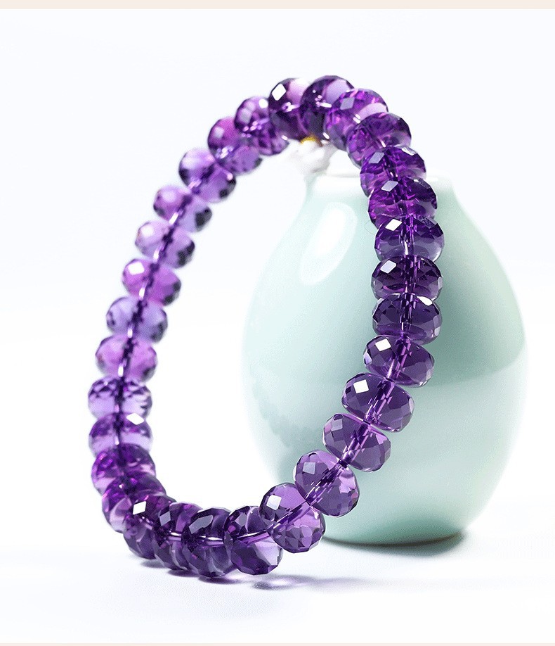 7a級天然巴西刻面紫水晶手鏈女切割車輪盤珠隨行紫色手串禮物