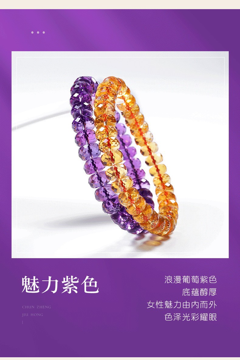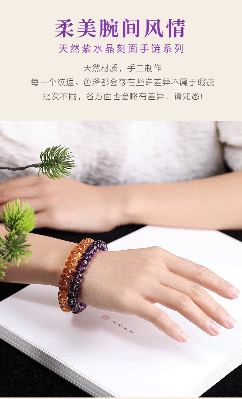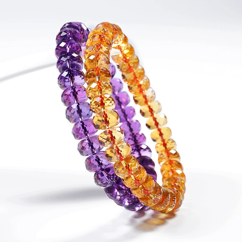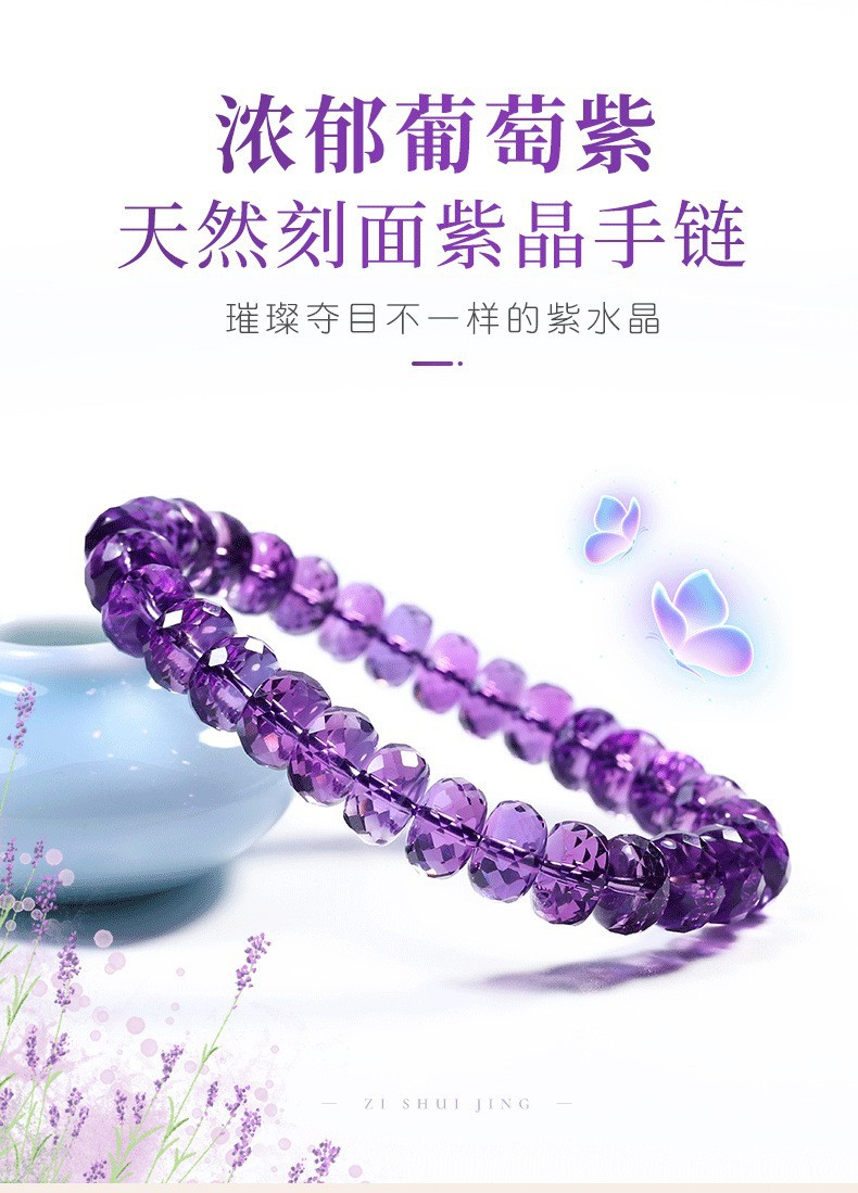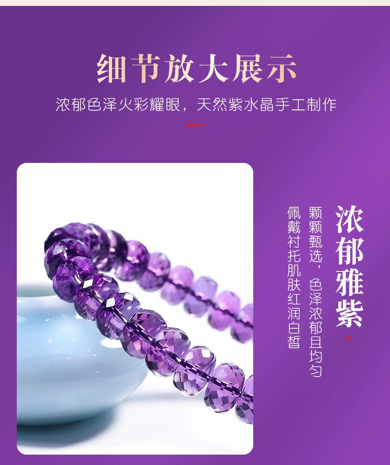 7a級天然巴西刻面紫水晶手鏈女切割車輪盤珠隨行紫色手串禮物