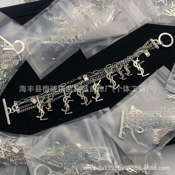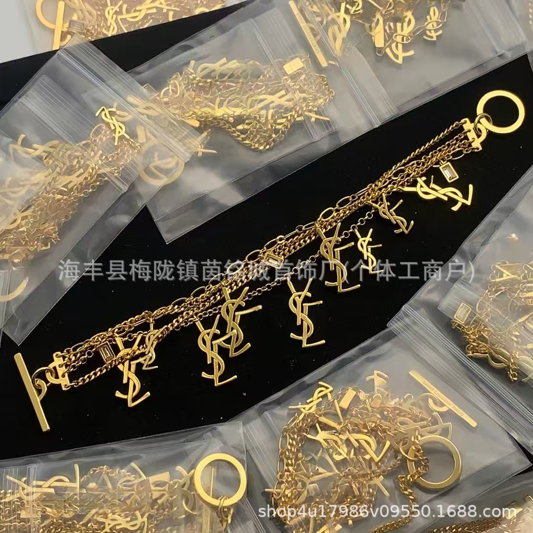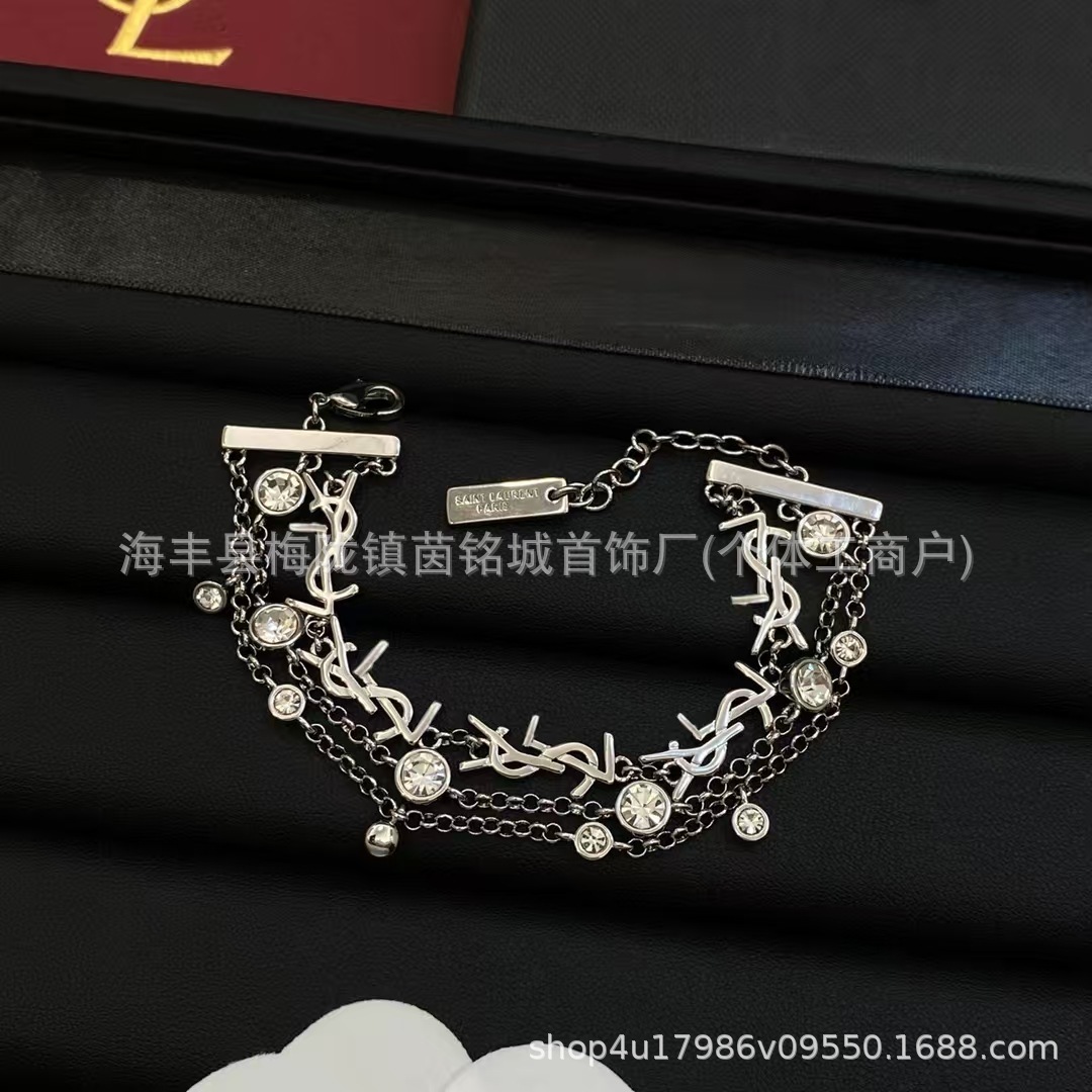 楊樹林新款聖家Y字母手鏈高版本流蘇多層水鑽吊墜時尚百搭手飾