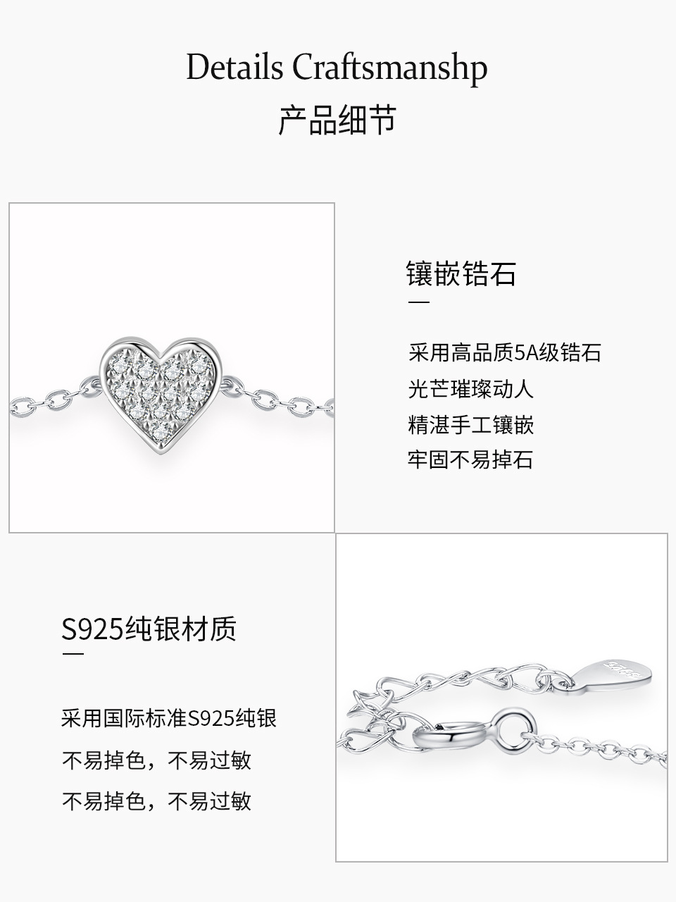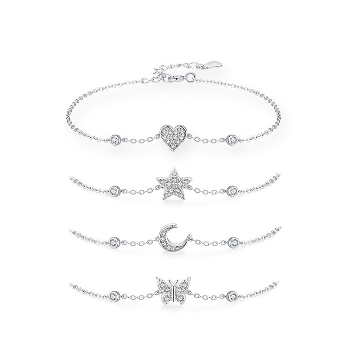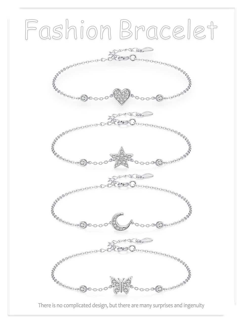 S925純銀輕奢愛心&星星&月亮&蝴蝶手鏈女歐美ins風手飾品