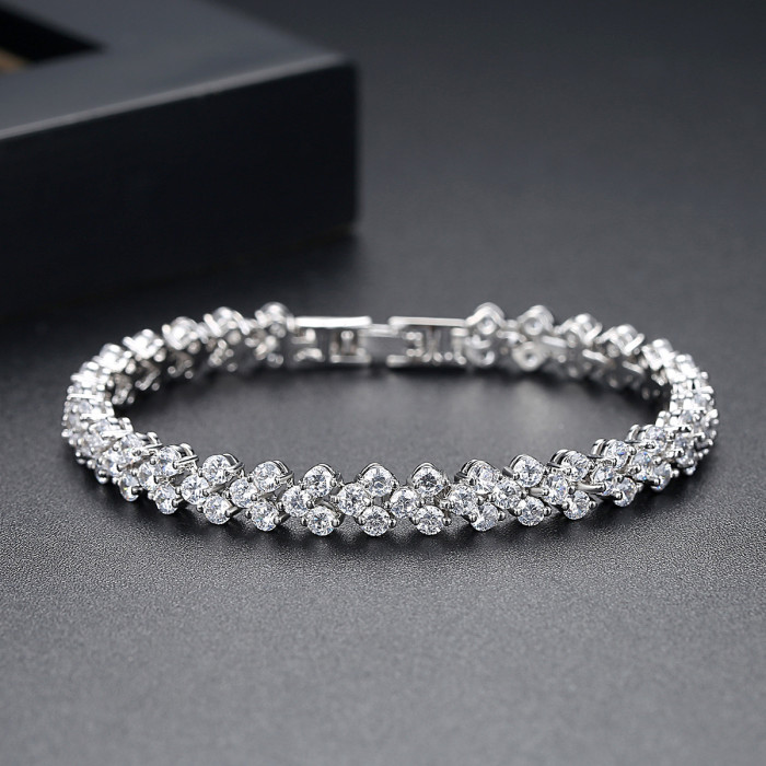 錦瑟 羅馬愛心手鏈歐美時尚鋯石女士手串寶石手鐲禮物手飾