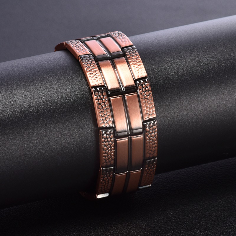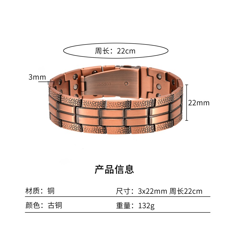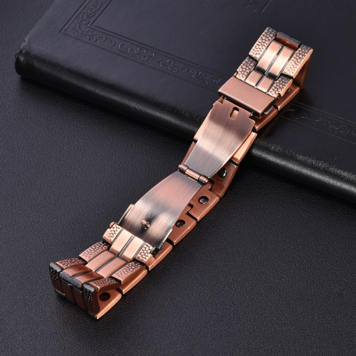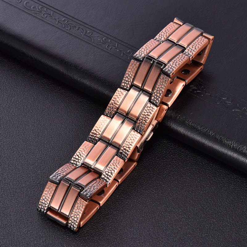 兩邊裂紋錶帶釦三排磁99.9%純紅銅手鏈