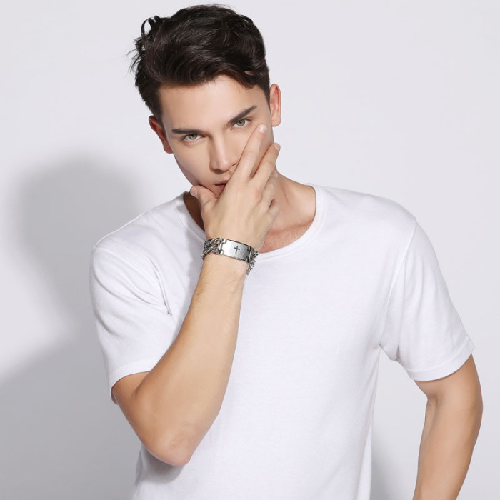 鏈條女士手鏈龐克歐美男士十字雙排鈦鋼不鏽鋼情侶馬年