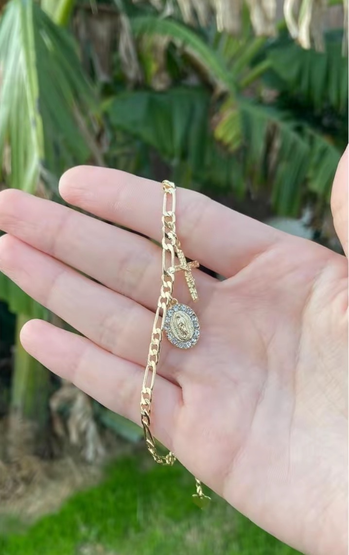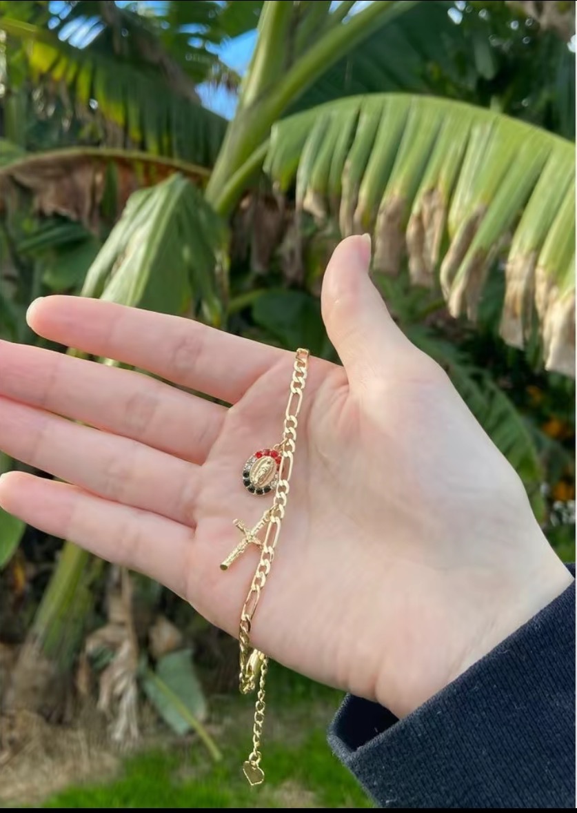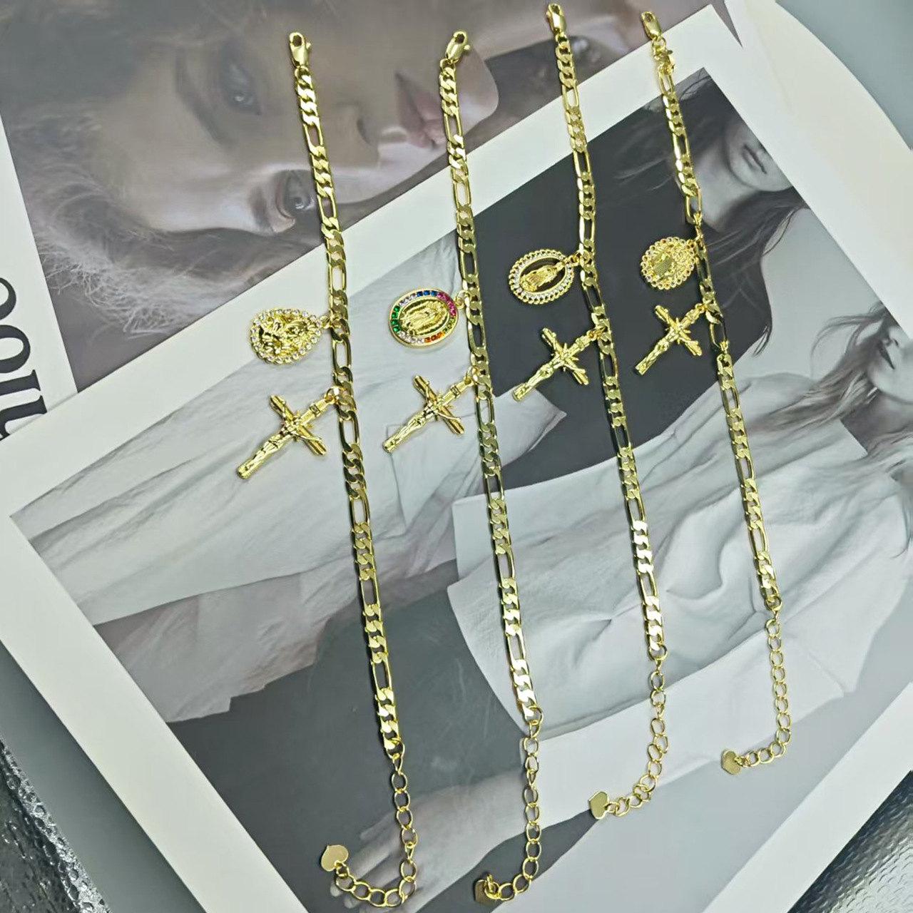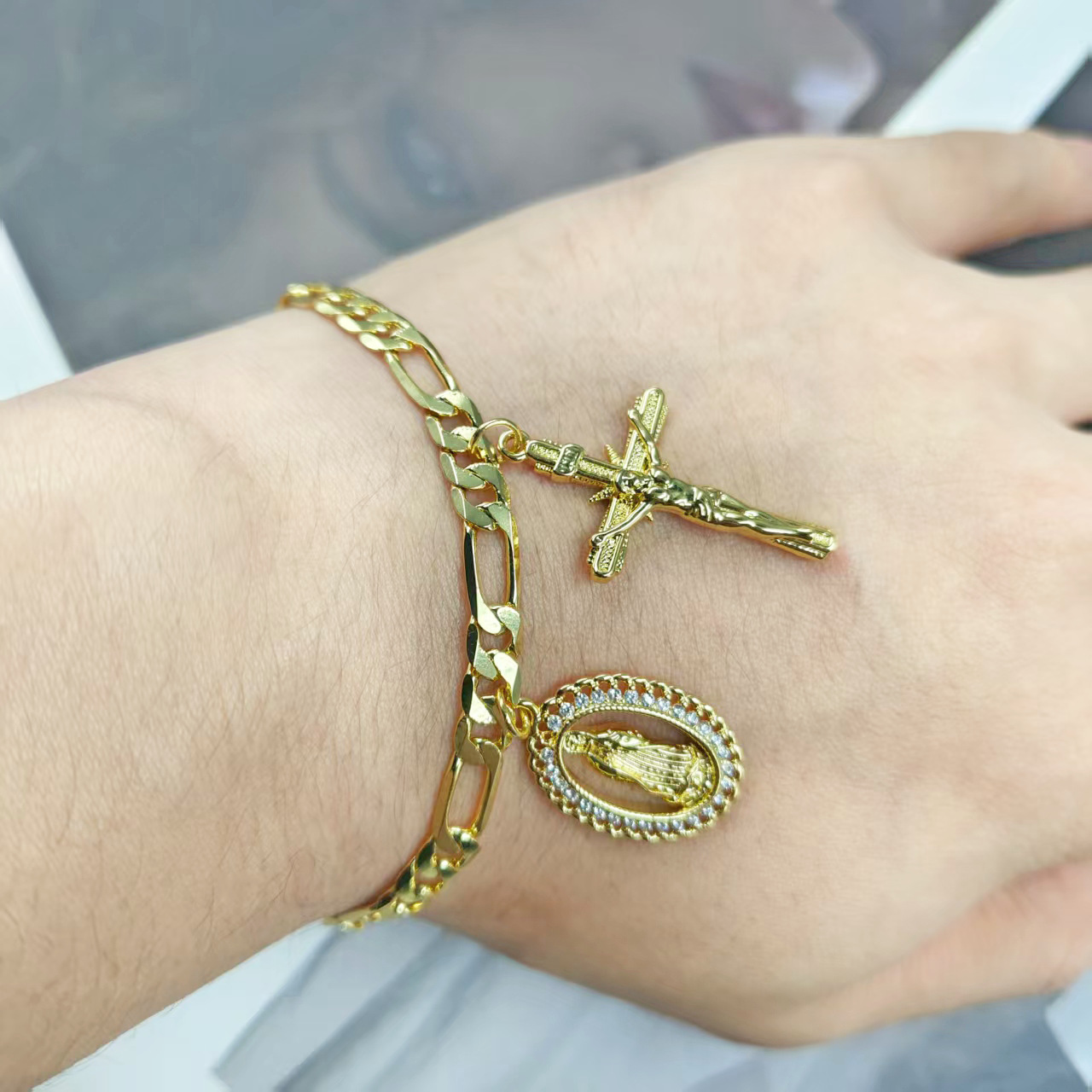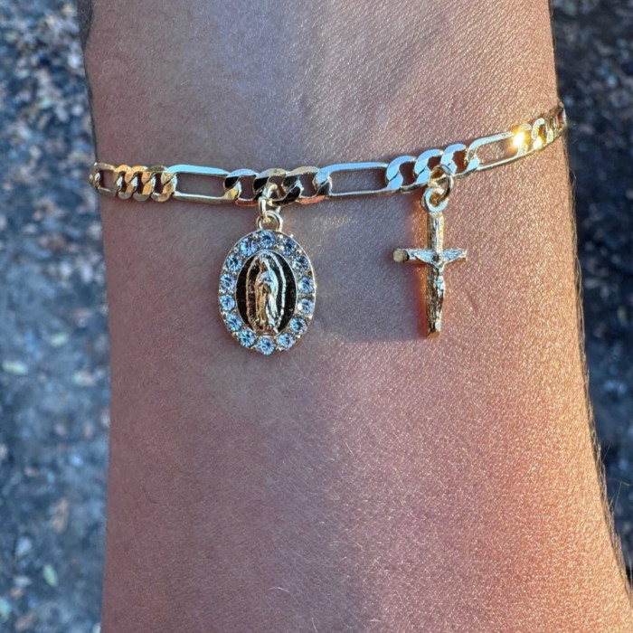 新歐美銅鍍14K包金復古個性簡約聖母瑪利亞吊墜手鏈 宗教飾品